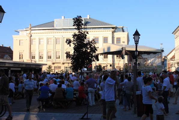 Et voici Györ, après une longue, longue traversée d’une zone industrielle. On retrouve la foule, ils sont tous dehors, encore 30° à 20 h !