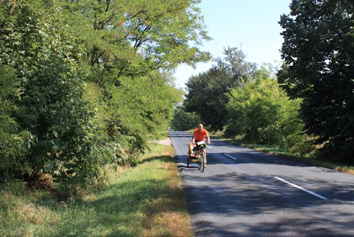 Toujours très peu de trafic sauf d’énormes tracteurs avec des remorques gigantesques, ils travaillent même le dimanche.