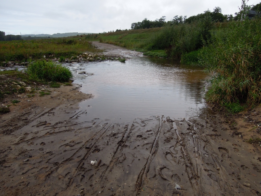 La pluie s'est arrêtée mais on va rouler pendant au moins 40 km sur une piste sableuse mouillée, pleine de flaques (je fais comme mes petitous, je ne les évite pas…), droite, droite, longue, longue, sans fin.