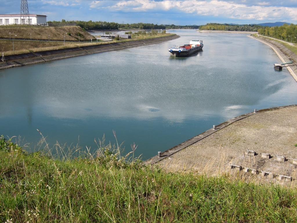 Le Rhin canalisé au niveau de la centrale hydroélectrique de Fessenheim.
