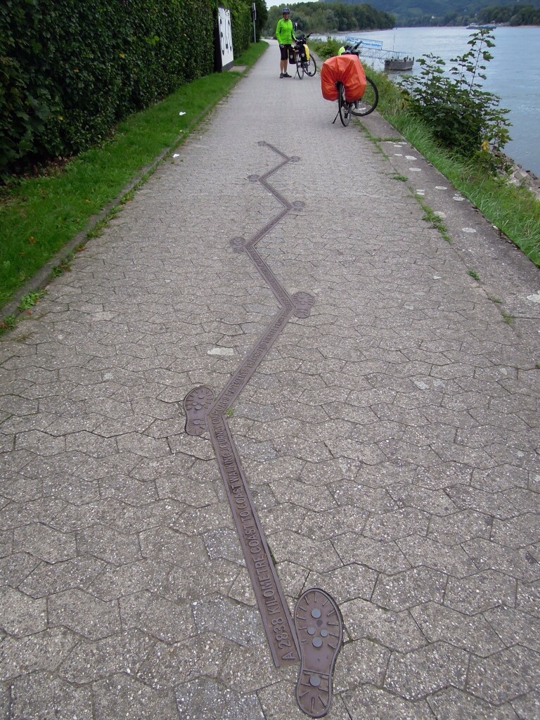 Un randonneur a fait graver son exploit sur la piste : 2838 km à pied de Bilbao à Rotterdam en passant par les Alpes, entre le 11.09.2002 et le 13.11.2002.