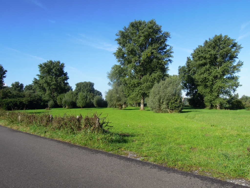 On traverse de véritables prairies vertes clôturées et arborées. Avec des vaches.