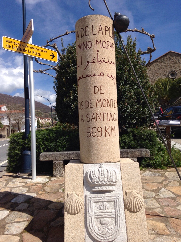 Puis direction Baños de Bejar, par la route et ses bornes milliaires. En photo, une fausse mais avec la distance restant à parcourir sur les 1000 km annoncés.