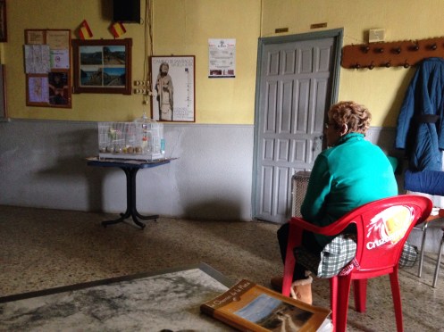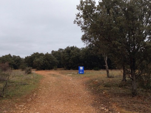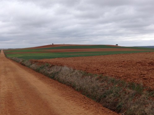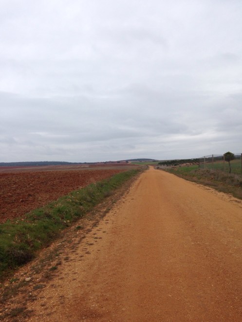 Arrêt vers 13 h dans l’unique bar sinistre et vide, de Riego del Camino. Je suis attaquée dès l’entrée par la patronne, car je pose mon sac sur une chaise !!! Elle nous sert notre manzanilla (camomille) et va s’asseoir face à la télé. Elle nous souhaitera tout de même « buen camino » en partant.