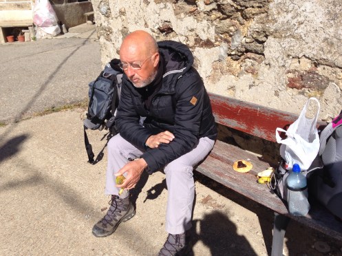 Cernadilla. Une centaine d’habitants. Je n’ai pas pu manger mon casse-croûte de 11 h. Un homme a surgi de la maison d’en face et j’ai tout su sur la géologie du coin, il n’y a pas eu la mer, la faune, il y a des loups, les réserves, le parc des picos de Europa, etc … Il ne devait pas avoir parlé à quelqu’un depuis longtemps.