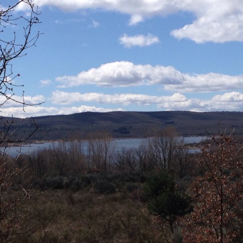 Au loin un lac de barrage.