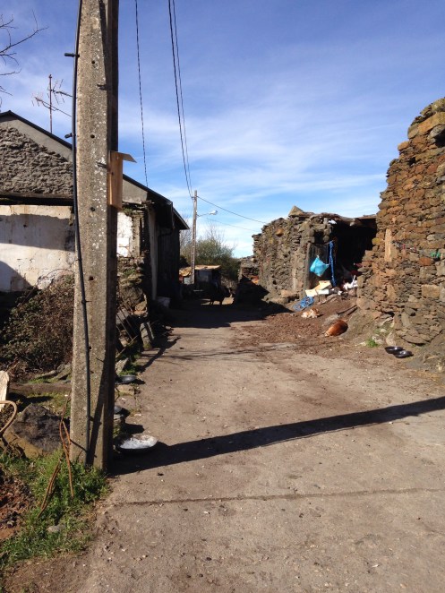 Une dernière flèche et nous arrivons à Laza. 475 m d’altitude.