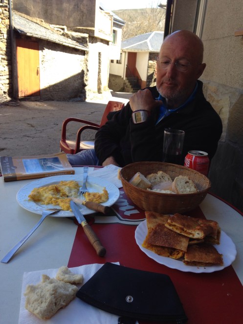 Et là quelle surprise, nous ne sommes plus 6 pélerins. C’est le début de la semaine sainte et des vacances. Ils sont 17 à dormir dans l’albergue. C’est à dire, par terre sur des matelas, dans un garage car l’albergue est en rénovation. Et notre pension est pleine.