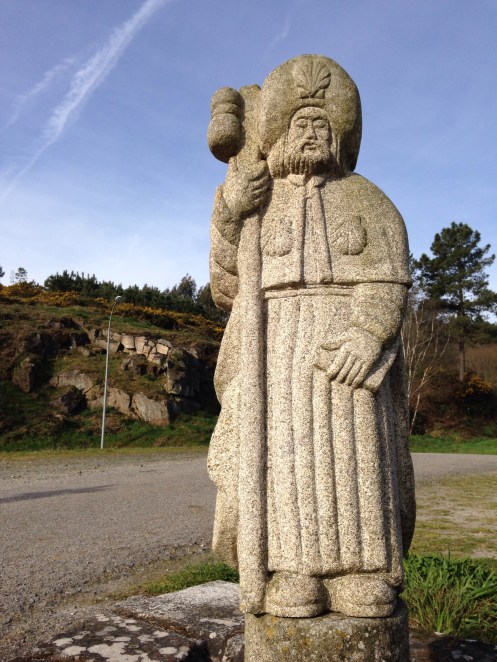 Un Saint-Jacques devant l’église de Taboada.