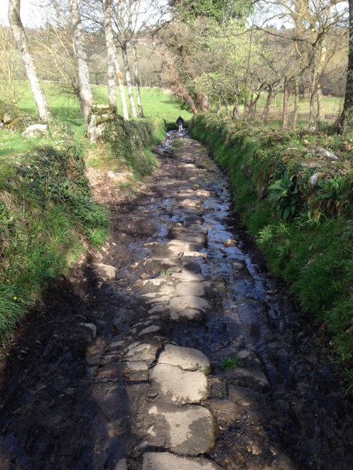 A partir de là, nous allons faire une longue descente raide qui fait très mal pour arriver à la rivière Ulla qui coule au fond de la vallée.
