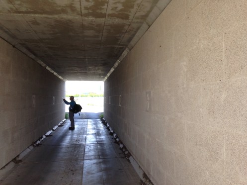 Tunnel pour passer sous une route. Il a été plaqué de pierres et par endroits, décoré avec des coquilles sculptées et autres décorations.