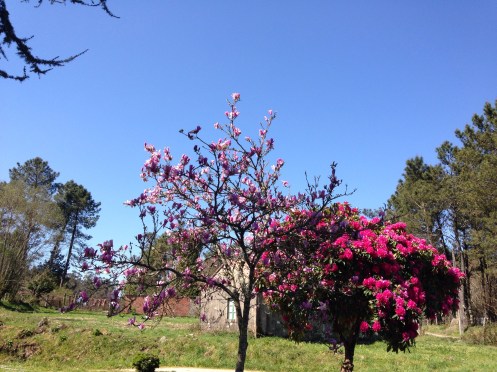 On traverse des villages. Ça sent le printemps, tout est fleuri.