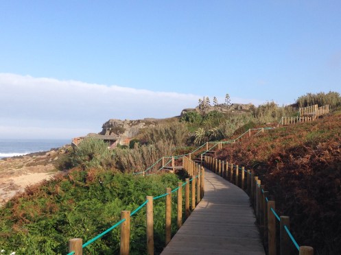Nous allons marcher pendant des kilomètres et des kilomètres sur une passerelle en bois, au dessus des dunes, de la végétation et du sable. C’est très agréable.