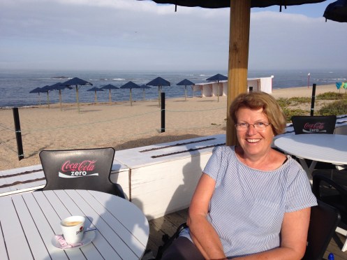 Arrêt café sur une plage déserte avec maître nageur sauveteur et barman adorable et je ne mets pas la photo des toilettes dignes d’un grand hôtel dans une toute petite baraque de plage !!! Je ne sais pas si on verrait ça chez nous.