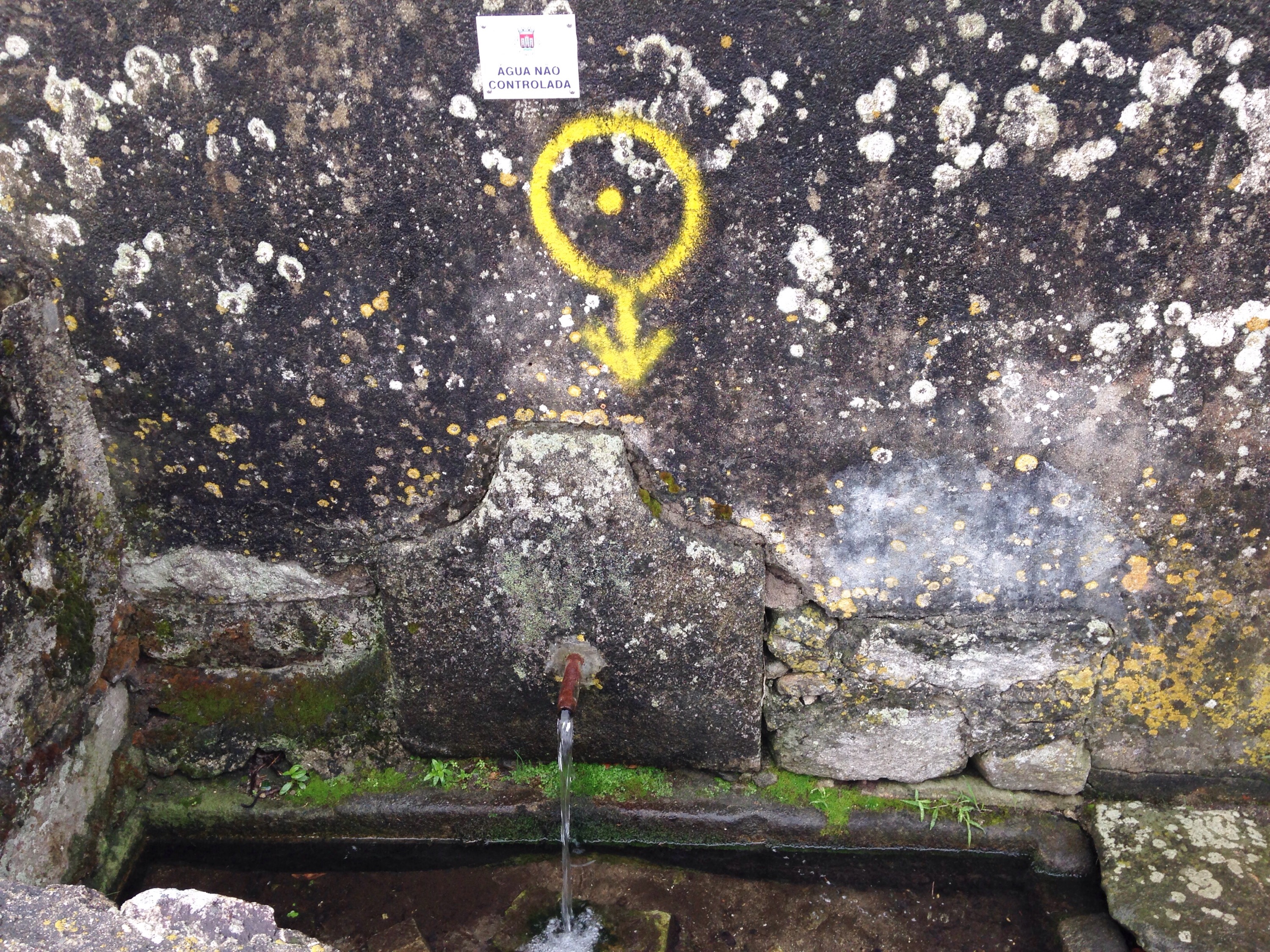Cette fontaine était cachée derrière un muret mais très visible grâce à la grande flèche jaune.
