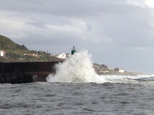Au large la mer est forte et les vagues se brisent sur l’entrée du port.