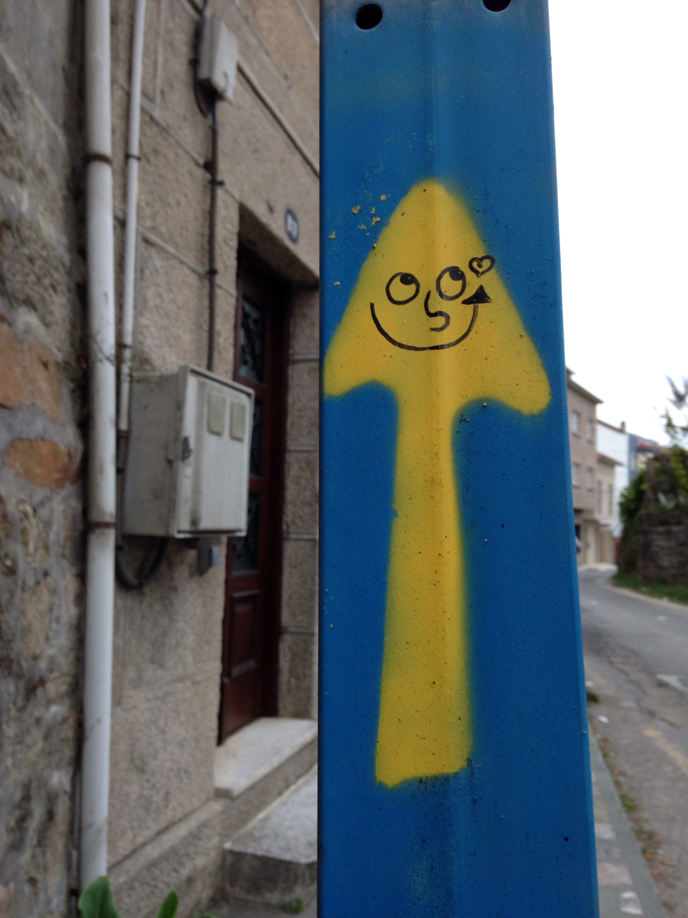 Que de flèches et que de monde, pas de risque de vous perdre !! C’est bien ! On a très envie de vous revoir !! Ici aussi c’était grisouillet mais sans pluie ! Plus que 2 étapes dis tu ? Bonne route demain, sous le soleil peut- être ? Bonne nuit en attendant mais demain matin je n’aurai pas de message à découvrir, zut!!