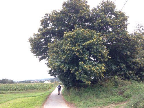 Nous avons été réveillés très tôt par des gens qui se levaient et qui descendaient leurs valises. Il y a beaucoup de pèlerins qui circulent avec un petit sac à dos et qui font suivre leurs bagages en taxi. Nous n’avons pas bien compris pourquoi ils se sont levés si tôt car l’étape n’était pas longue et de plus ils ont leur hôtel déjà retenu. Donc pas la peine de se presser.