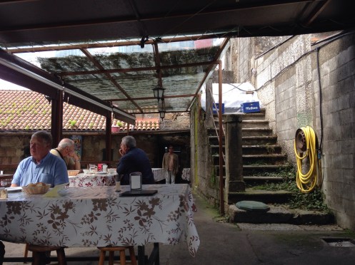 Et voici Caldas de Reis. Le restaurant chic où nous prenons notre repas de midi vers 15 h, à l’heure espagnole !!! Il doit être coté car beaucoup de pèlerins s’arrêtent. D’ailleurs nous avons très bien mangé.
