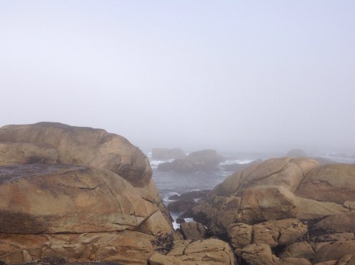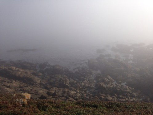 Aussi gris et brumeux qu’hier au réveil. Nous retournons voir les pierres qui sont près du Sanctuaire.