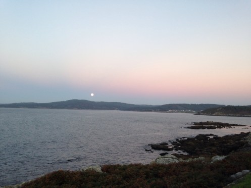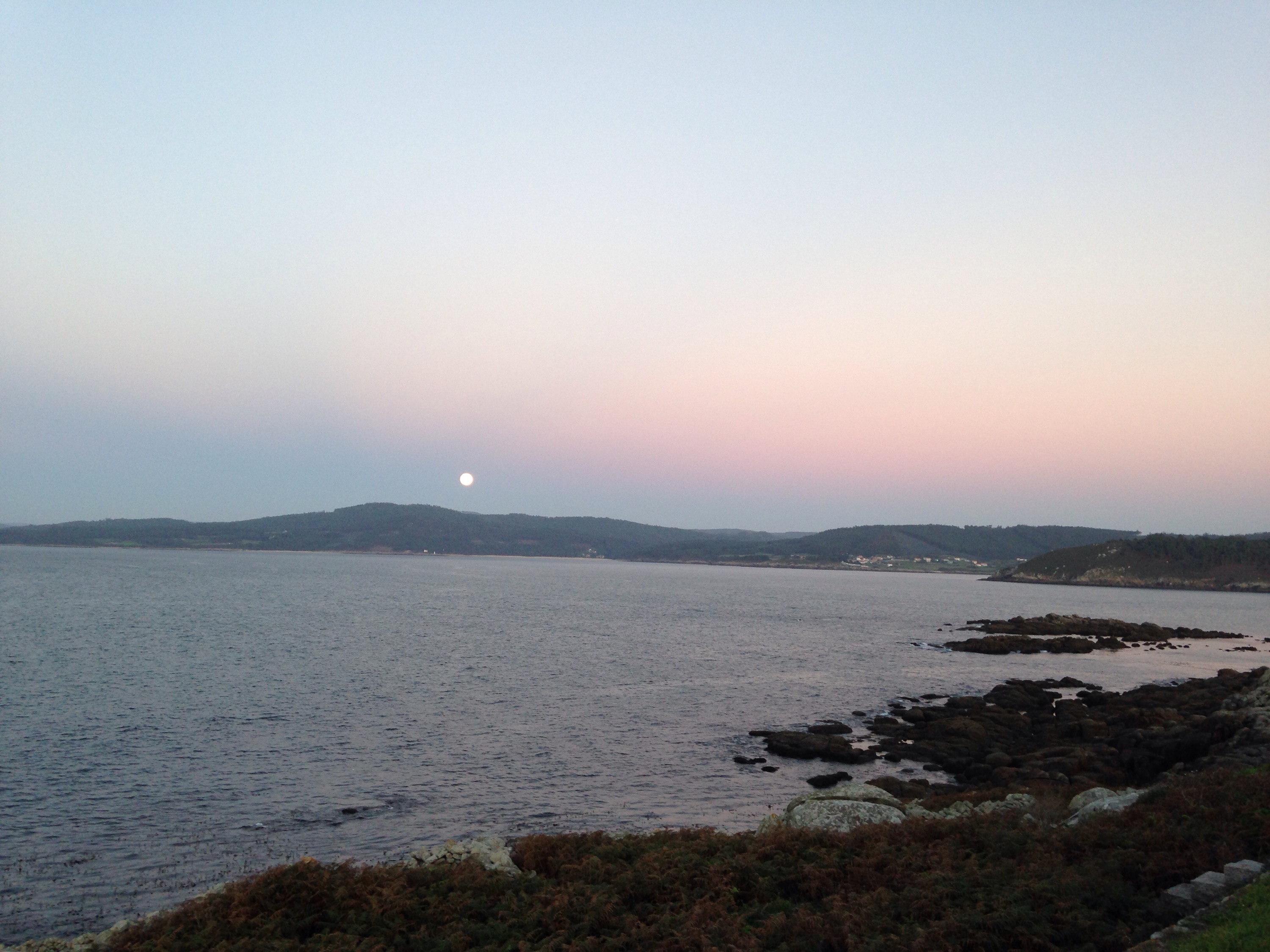 Sur le chemin du retour la lune se lève à l’horizon. C’est cette nuit qu’il y a une éclipse, je ne pense pas avoir la chance de la voir comme l’éclipse de soleil du mois de mars que nous avions vue en marchant.