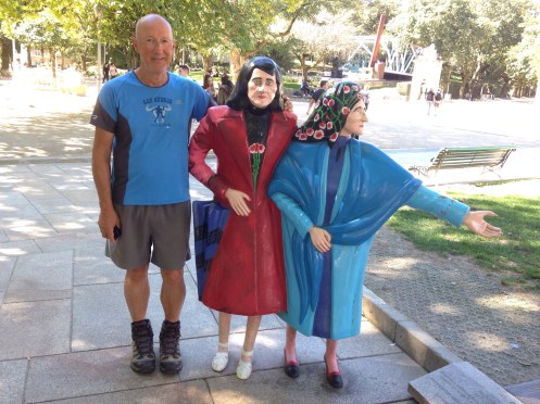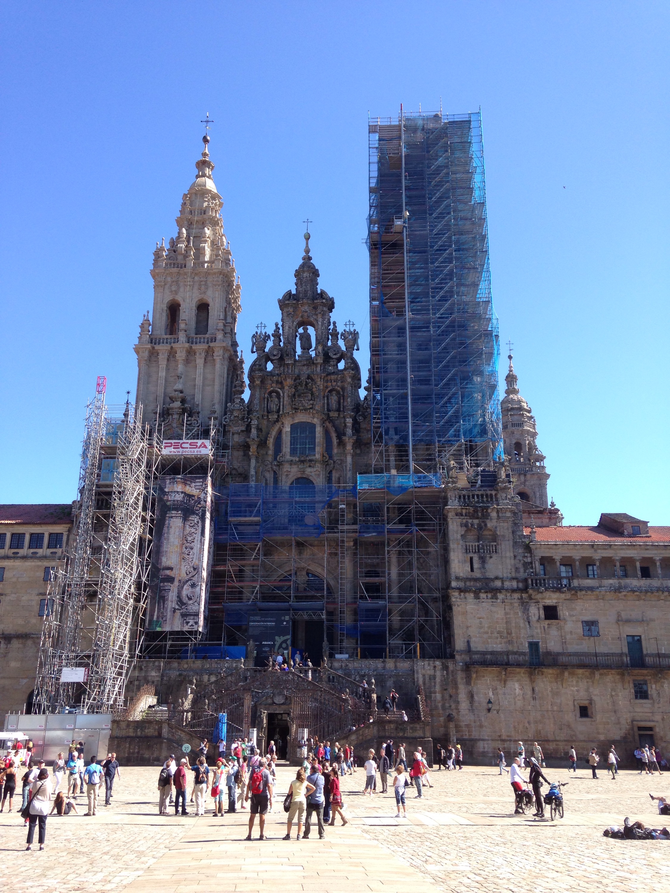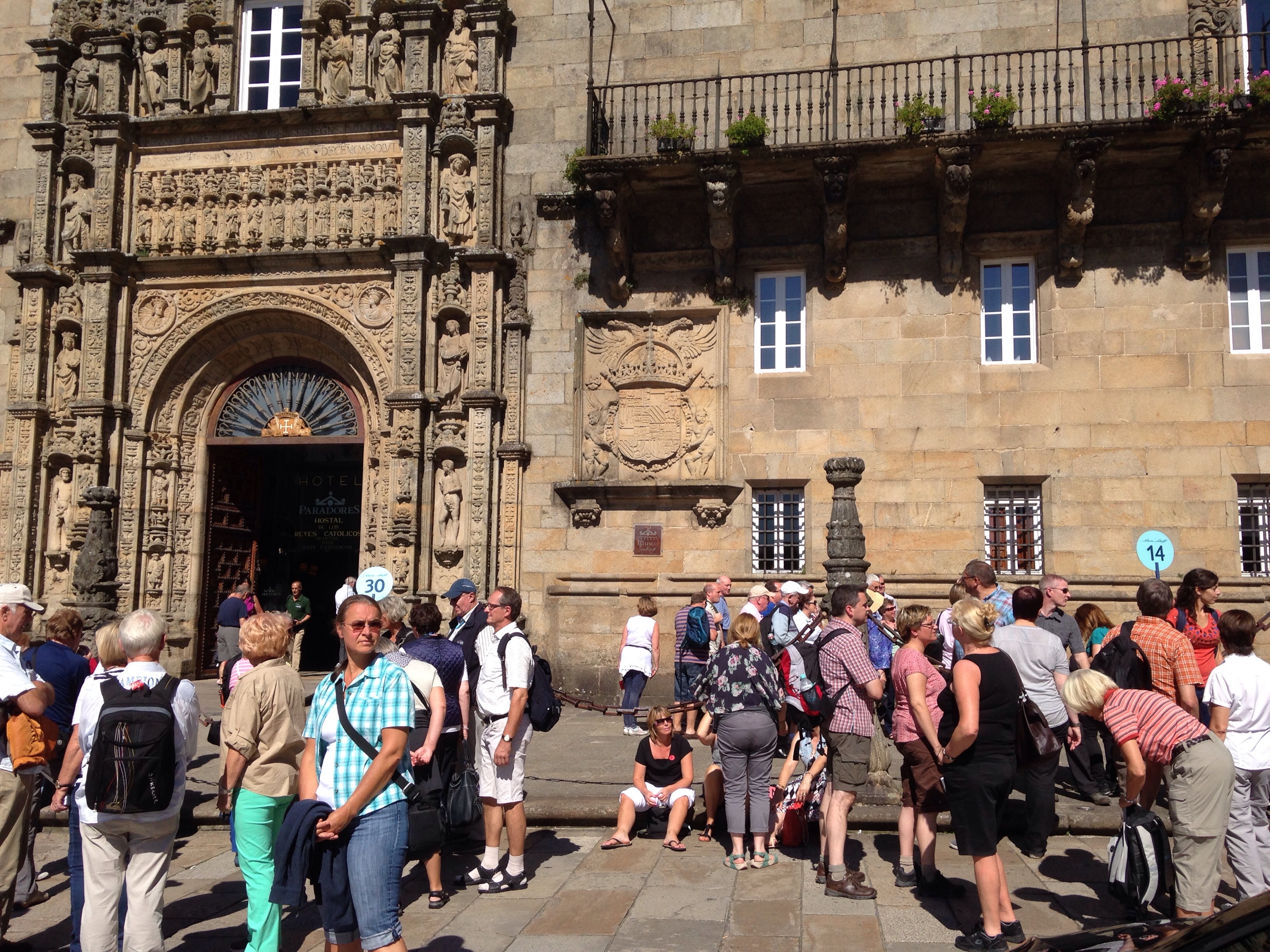 Pas beaucoup de pèlerins mais des groupes de touristes devant le Parador … face à nous le 30 et le 14 !!!