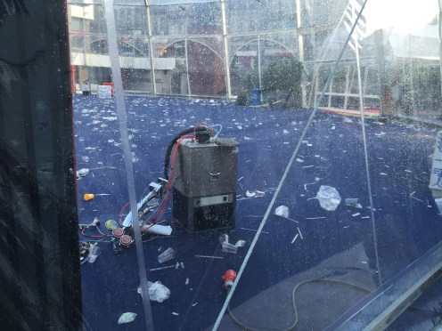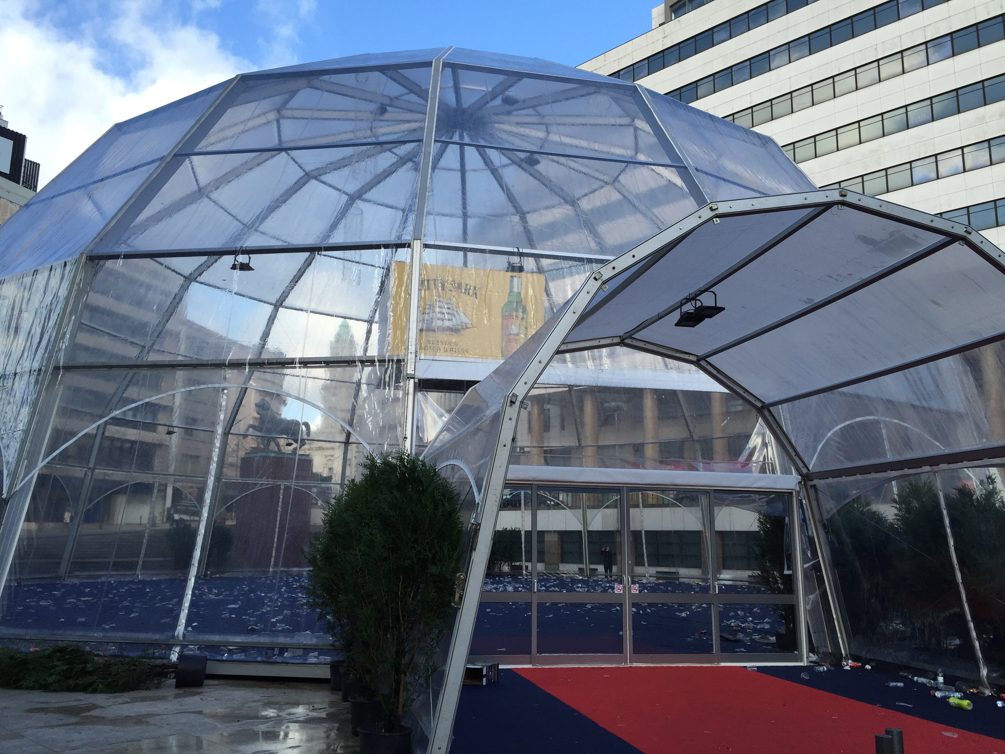 Cette bulle, montée pour faire la fête le 31, n’a toujours pas été nettoyée et enlevée.