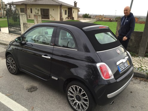Nous voulons louer une voiture. Grande hésitation : on réserve sur internet, on demande à l’hôtel, on va à l’aéroport car il y a tous les loueurs sur place … Chouette il y a un garage avec location de voiture tout près de l’hôtel !!! 2 h30 après y être rentré nous partons enfin avec une voiture … La commande du client qui est avant nous dure, dure, dure. Nous avons failli partir tellement c’était long. C’est à nous, nous pouvons avoir une voiture et la rendre à l’aéroport de Lisbonne. Nous partons à pied à l’hôtel chercher les valises. À notre retour il y a évidemment un client qui est en train d’être servi … Ça y est c’est à nous, nous prenons possession d’un magnifique Fiat 500. Yves branche notre GPS (nous avons pensé à le porter), impossible de le faire démarrer … Pas possible de partir sans un GPS nous allons nous perdre. Bon comment faisions nous avant ??? On va demander si on peut en louer un ? Et si on vérifiait si l’allume-cigare fonctionne ? Ce n’est pas le GPS qui est mort c’est la prise de l’allume-cigare. On va nous changer la voiture. La nouvelle voiture vient de revenir au garage, elle n’a pas été nettoyée … Aucune importance on veut partirrrr !!!