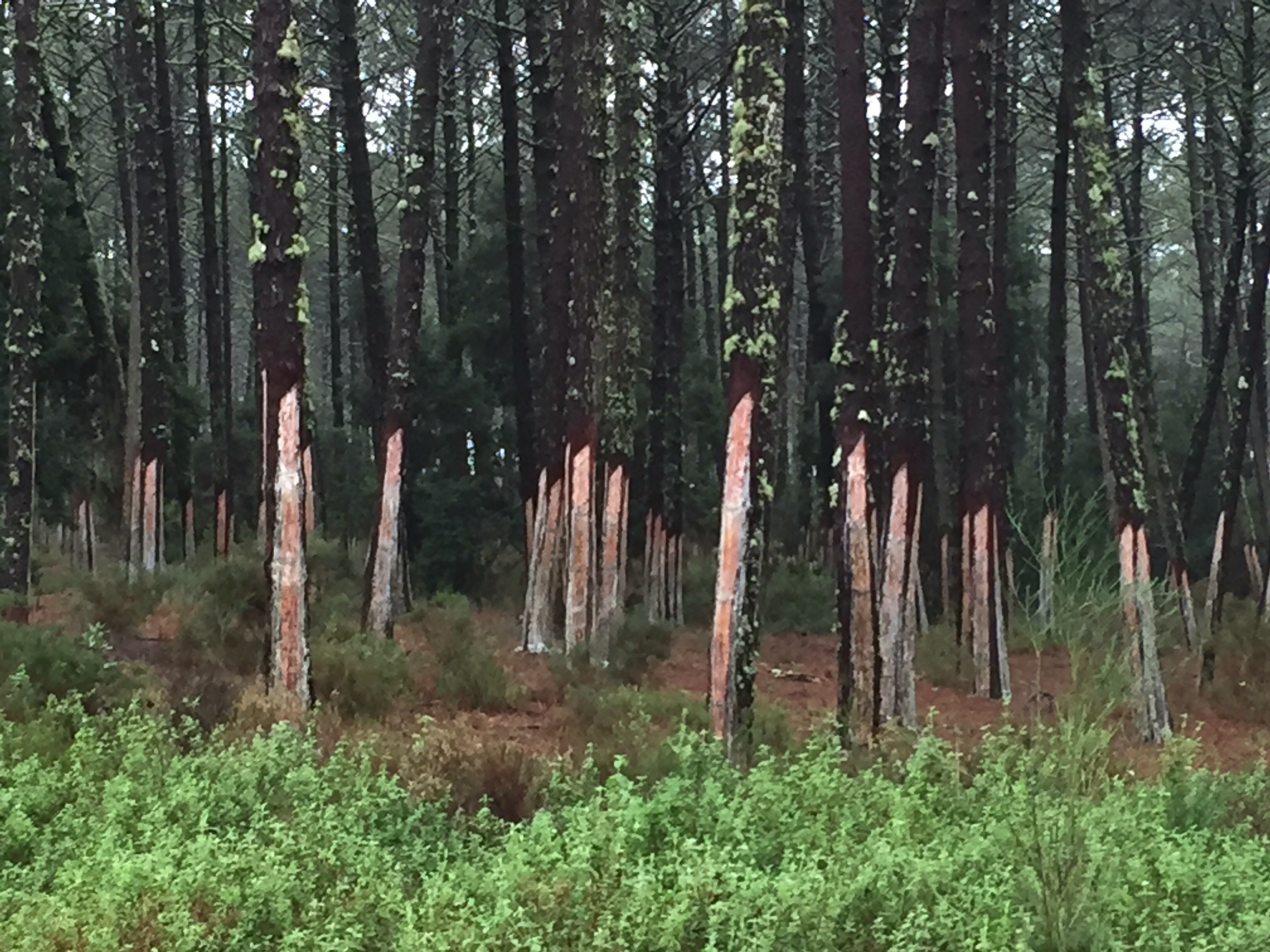 Étrange, ces troncs de pins sans écorce ?