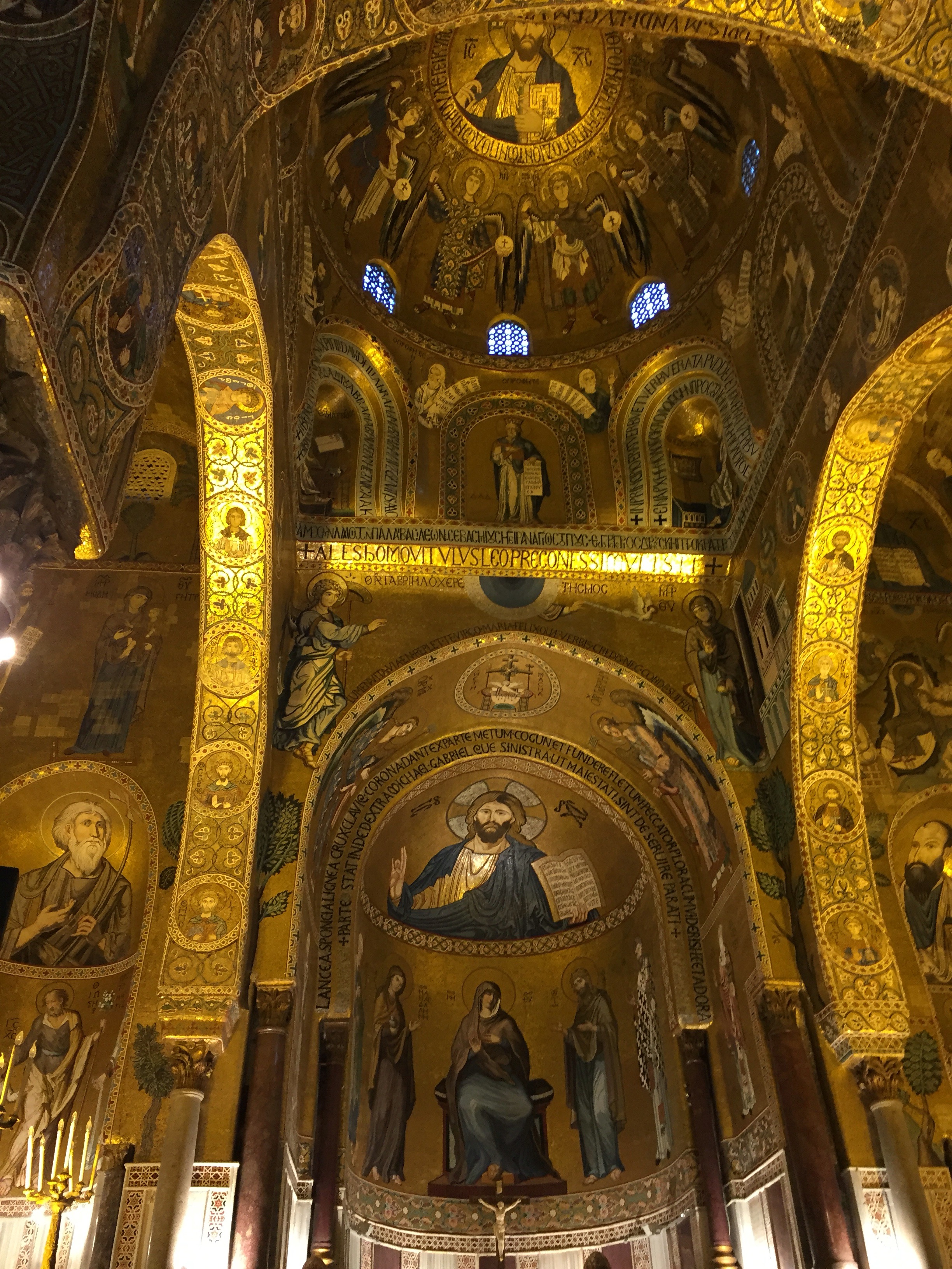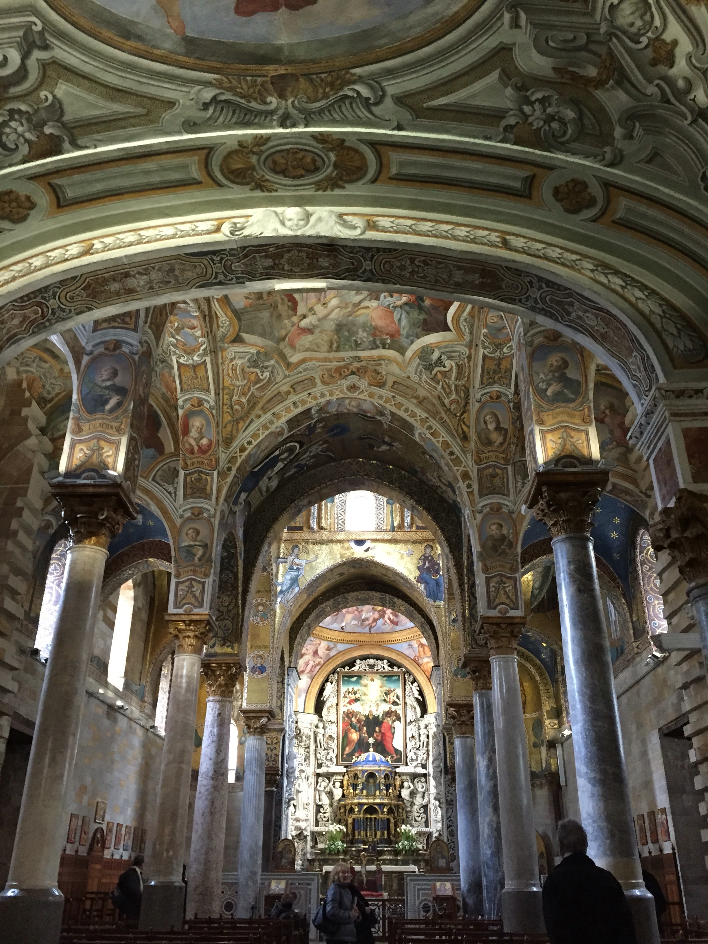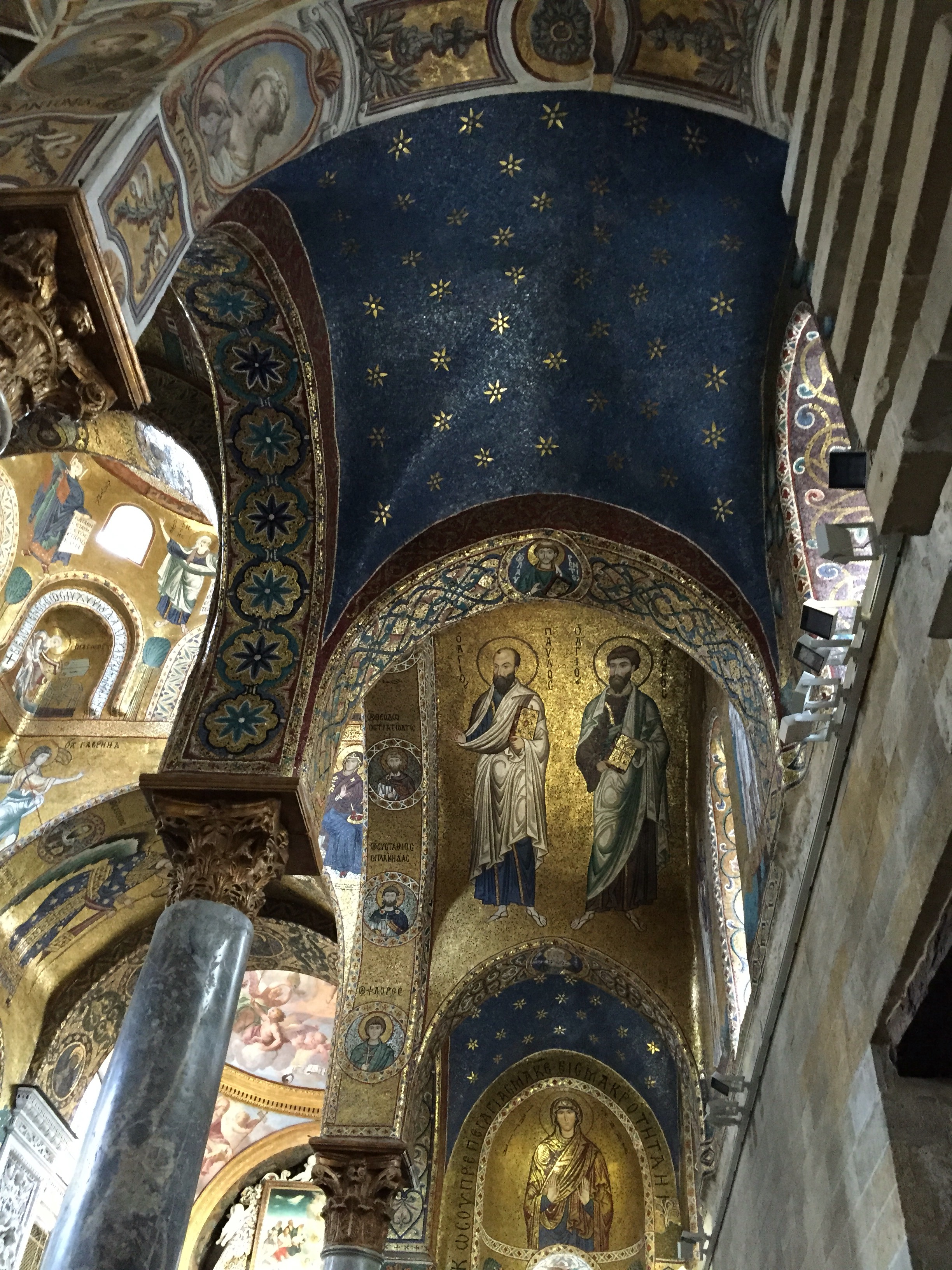 Intérieur de la Martorana. Magnifiques mosaïques. Mérite d’y entrer même si la visite est payante. San Cataldo était fermé.