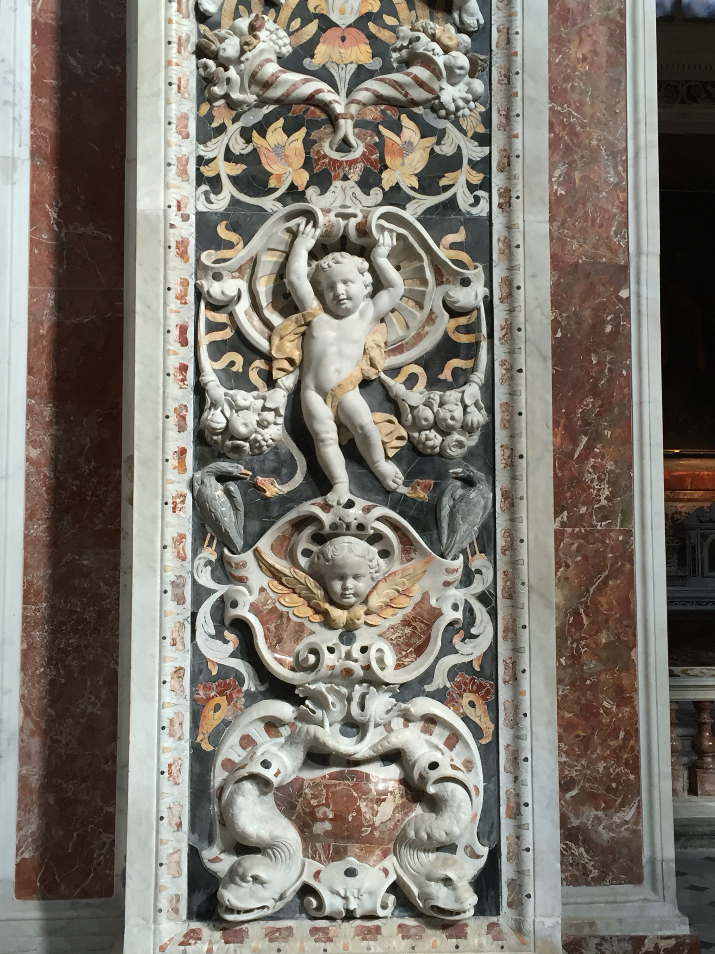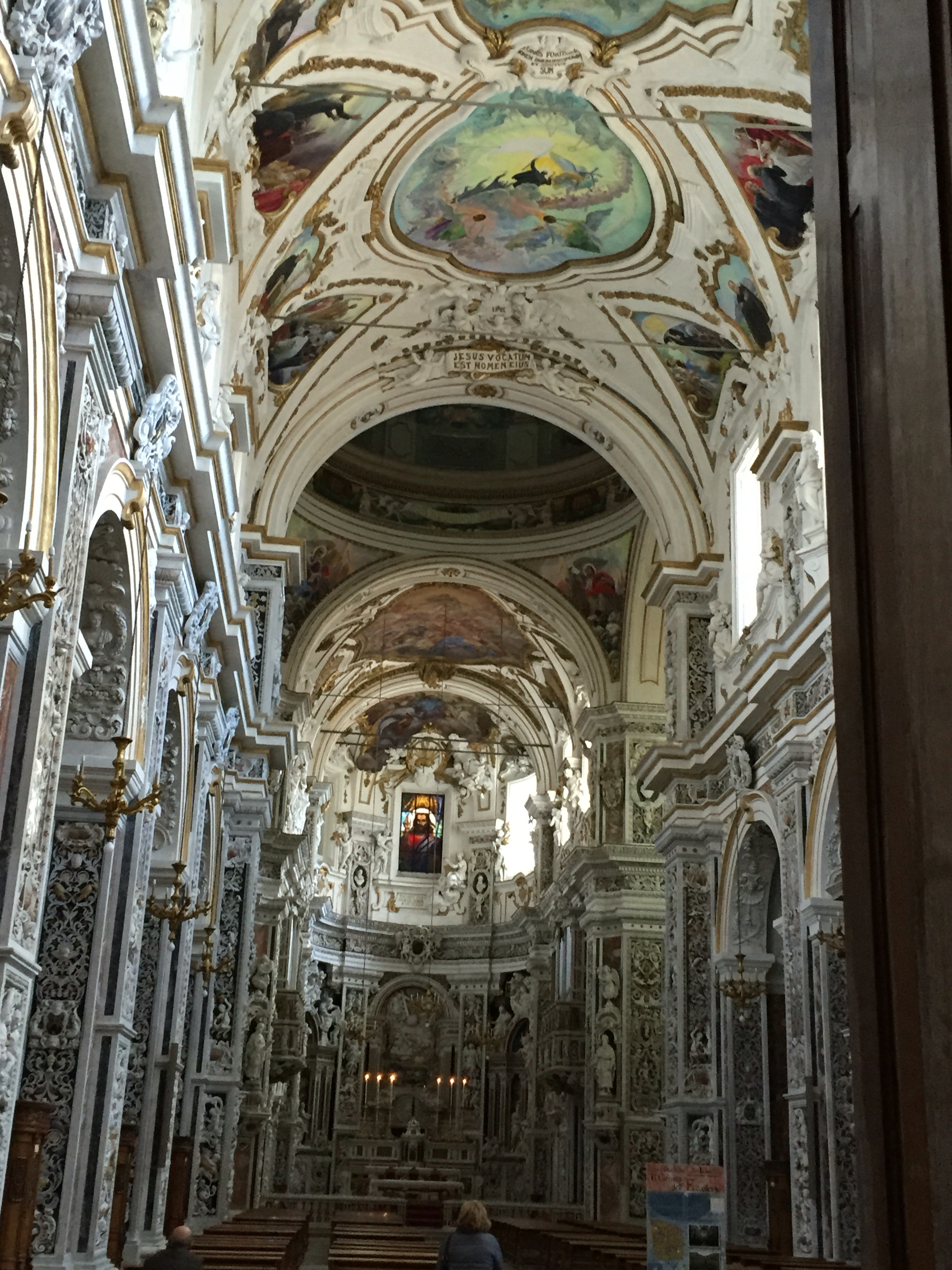 Chiesa del Gesú. Extraordinaire travail, tous les murs sont ornés d’angelots, du pur baroque sicilien.