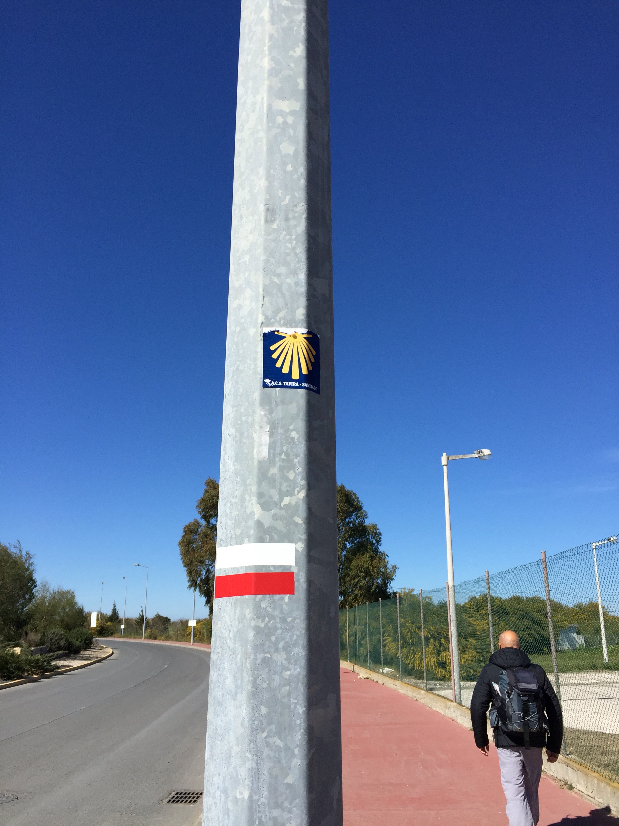 Magnifique soleil, la vie est belle. Maintenant il faut trouver un endroit pour faire tamponner nos credencials. Sortie de la ville rien, demi-tour jusqu’au poste de Police où nous avons le tampon espéré qui va dire où nous avons commencé notre chemin.