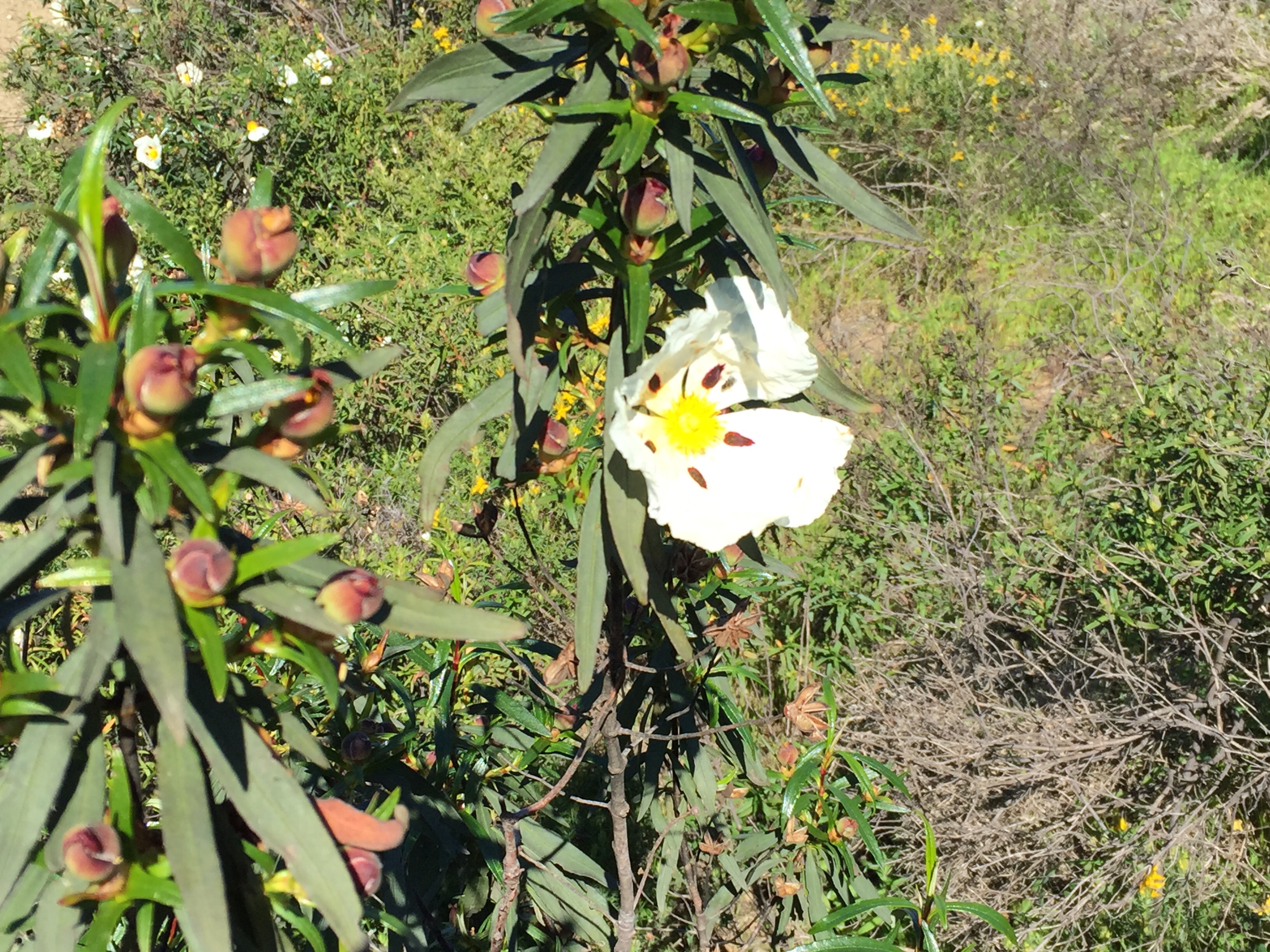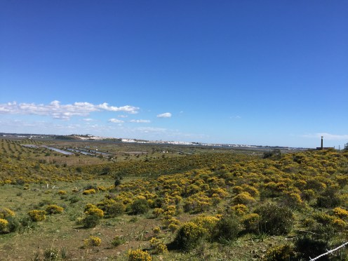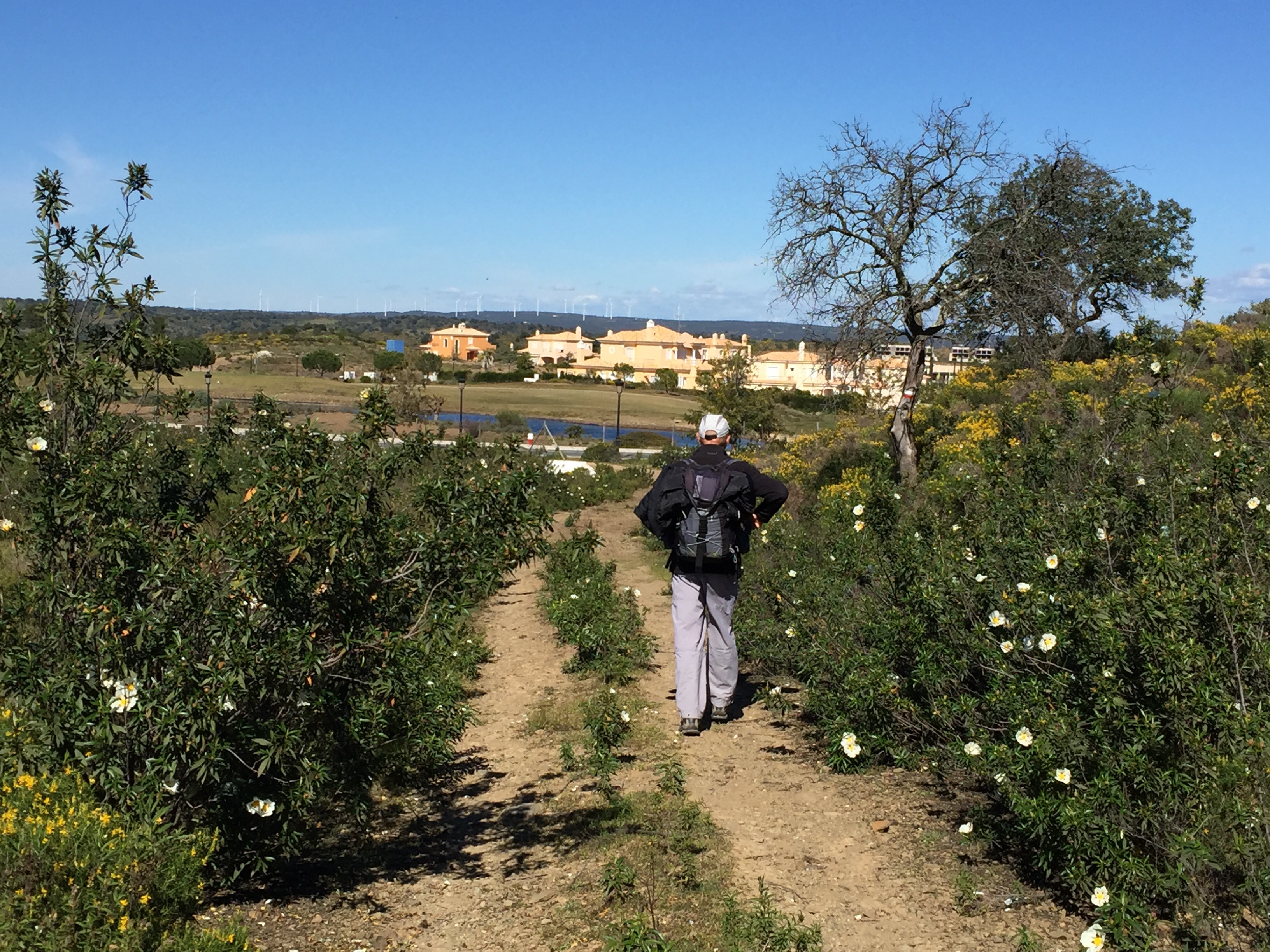 Magnifique chemin. Nous avons retrouvé l’Algarve avec les cystes, symbole de l’Algarve, en fleurs. Les petites collines avec des chemins qui montent et qui descendent sans arrêt.
