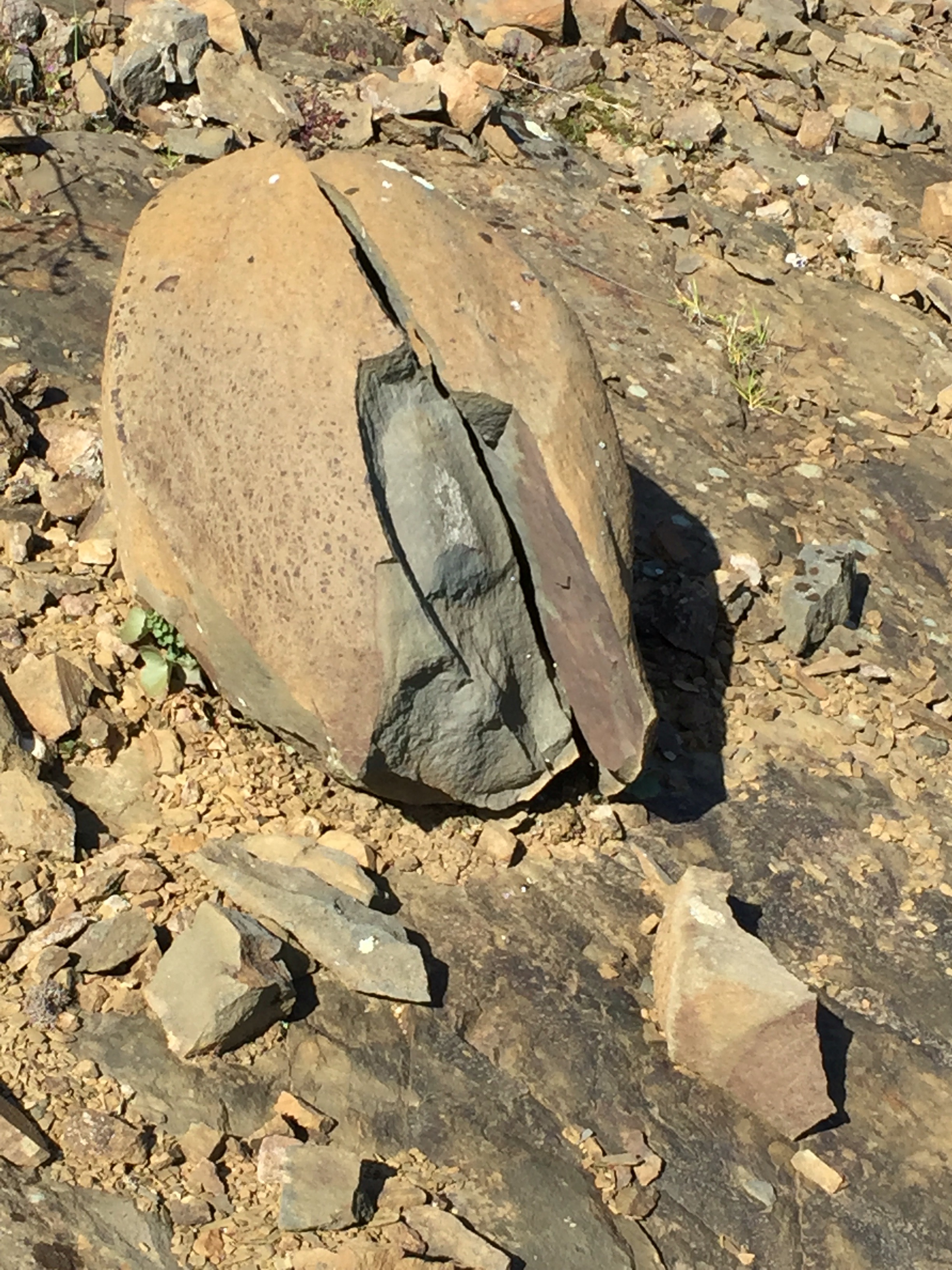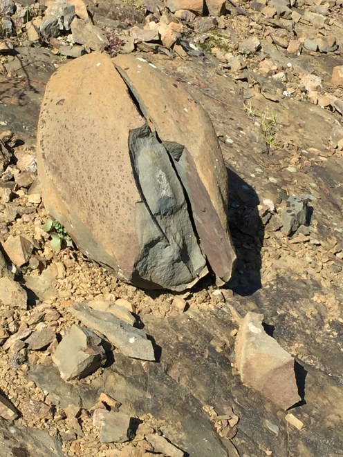 Un caillou que j’ai trouvé beau au bord de la route. C’est rare qu’ils soient cassés en deux de cette façon.