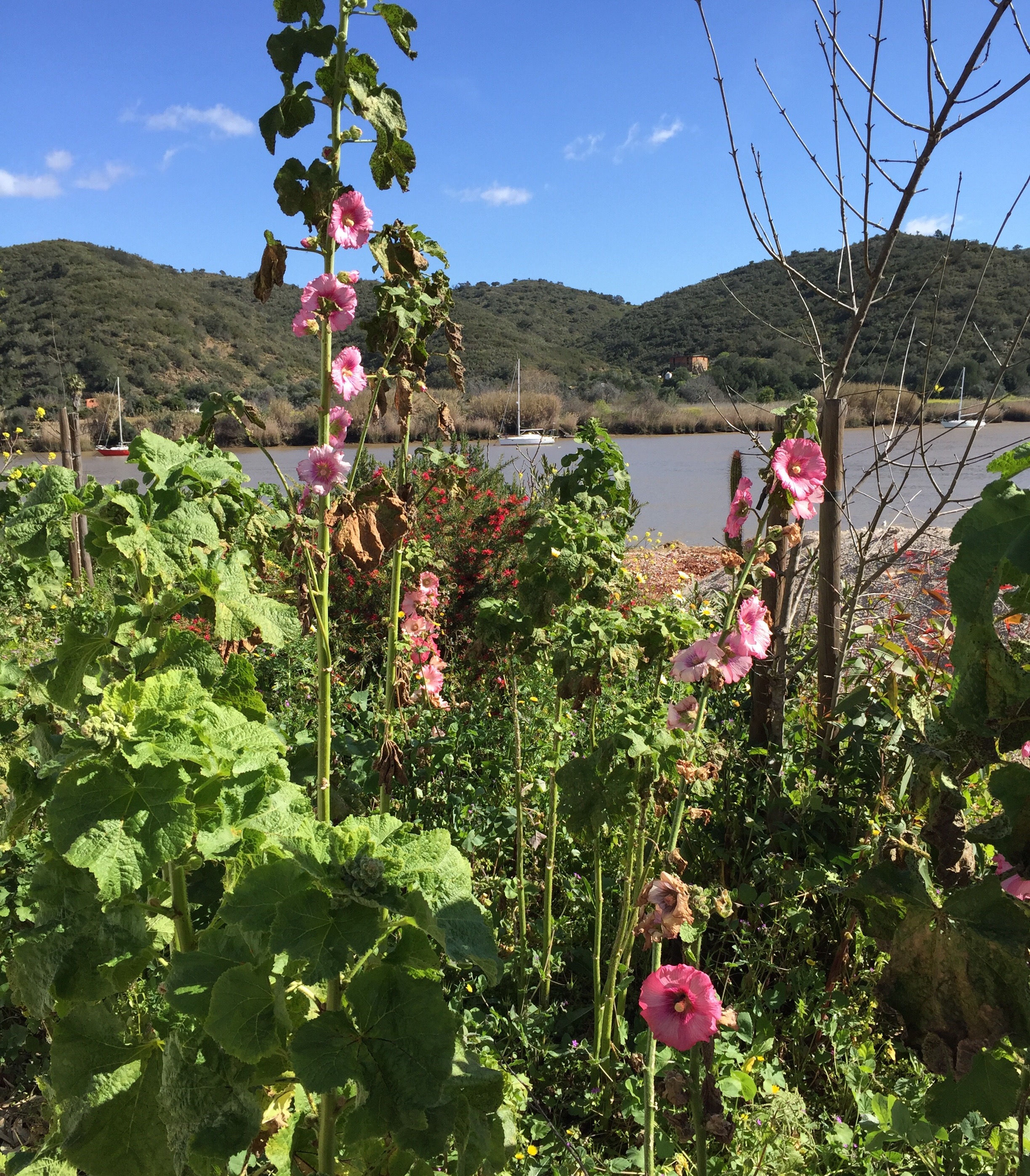 À mon grand étonnement des roses trémières. Je pensais qu’elles fleurissaient beaucoup plus tard.