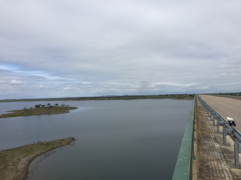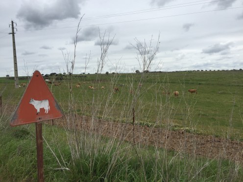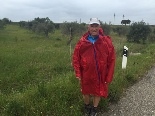 Nous sortons les capes de pluie pour trois gouttes d’eau qui tombent deux kilomètres avant Mourão. Faudrait pas mouiller notre maison ambulante !!!