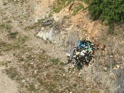 Au bout, la bêtise humaine, un amas de bouteilles déposées par les pêcheurs !!!