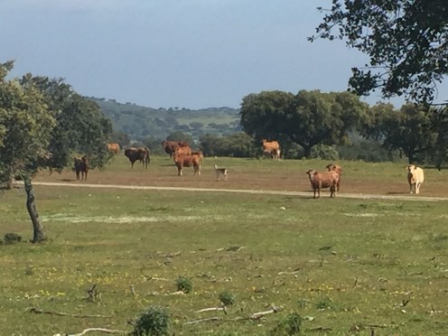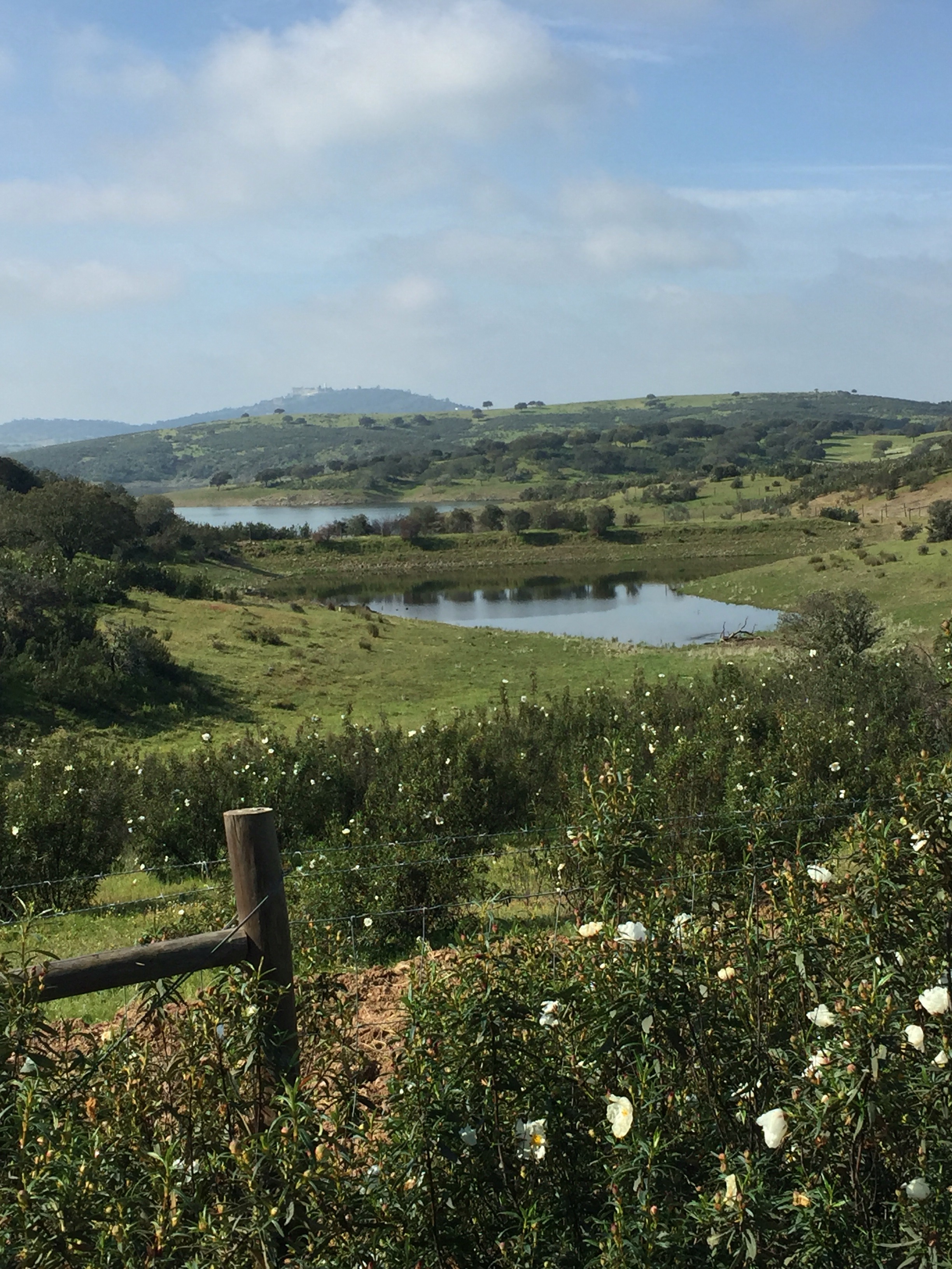 je repars en arrière, hier soir nous sommes allés faire le tour de Telheiro à la recherche d’un bar ou d’un restaurant. Pas de bar, étonnant car même dans les petits villages il y en a au moins trois ou quatre. Ça devait être très petit. Nous voyons un panneau de restaurant, nous traversons la cour et arrivons devant une porte fermée mais avec de la lumière. Le propriétaire nous aperçoit, vient nous ouvrir. C’est fermé, il n’ouvre que demain, il nous fait visiter gentiment. Une ancienne huilerie transformée en restaurant et galerie d’art. Très original, nous aurions bien aimé pouvoir manger. Il nous emmène au bar où nous prenons l’apéritif et discutons. Il est Hollandais, son père est artiste. Très sympa.