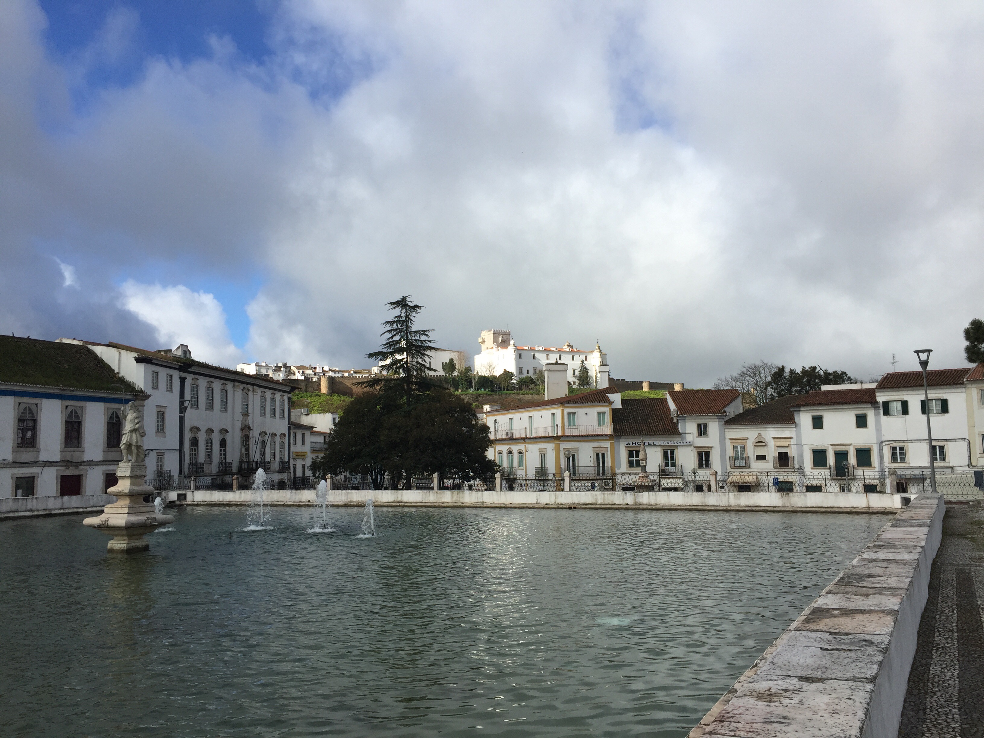 Au loin le château que nous n’avions pas photographié à cause de la pluie. Au premier plan le Lago de Gadanha, un immense bassin en plein milieu de la ville.