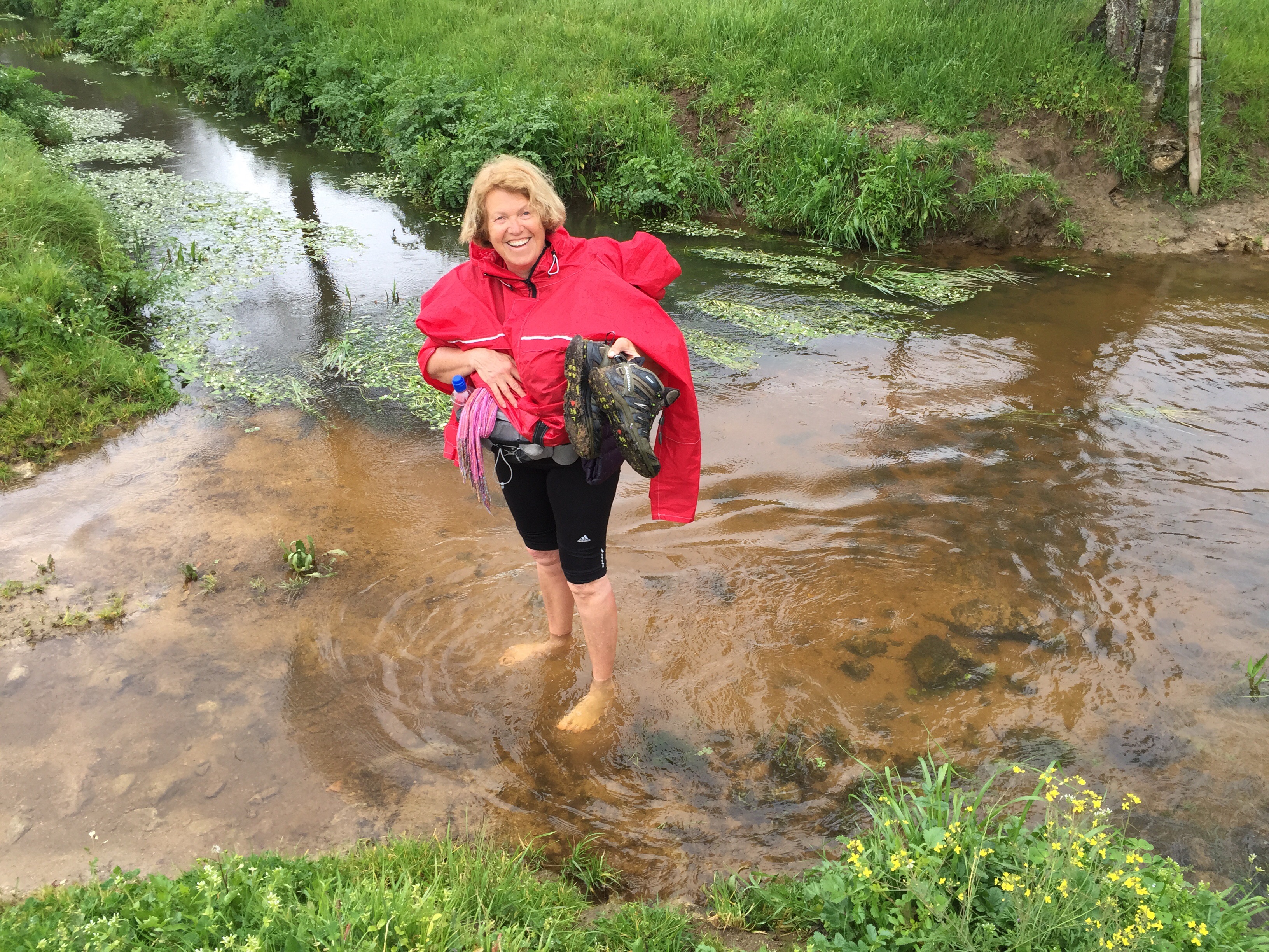 Petit obstacle sur le chemin. J’ai peur de mouiller mes chaussures en sautant sur de grosses pierres branlantes. Elles ne seront pas mouillées mais mes pieds n’ont certainement pas apprécié d’avoir trempé car ce soir j’ai deux ampoules !!!