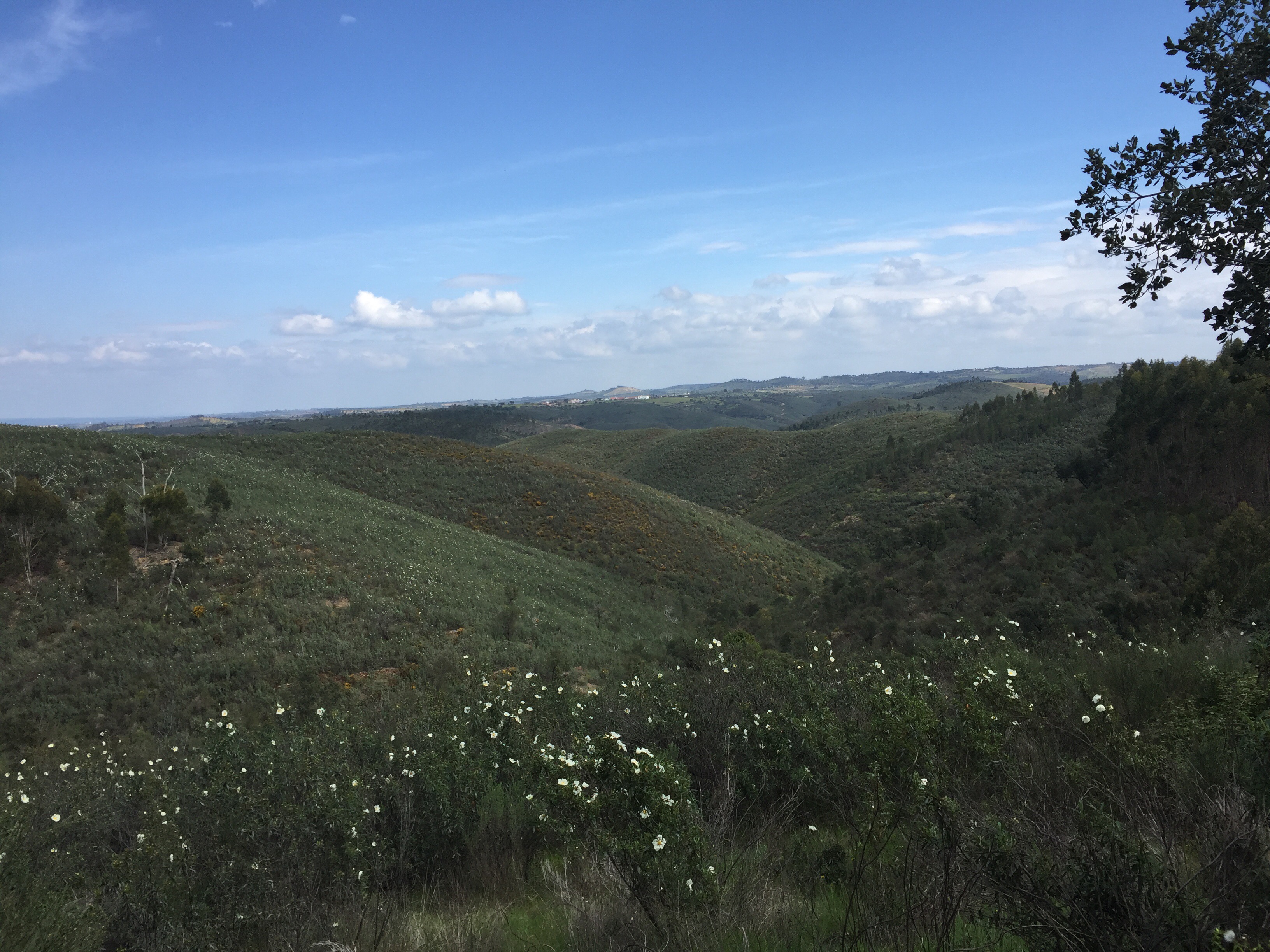 De grandes descentes. Il va falloir rejoindre le Tage. Les pins ont été mangés par les chenilles. Une horreur !!! Rassurez-vous les chenilles ne sont plus là.