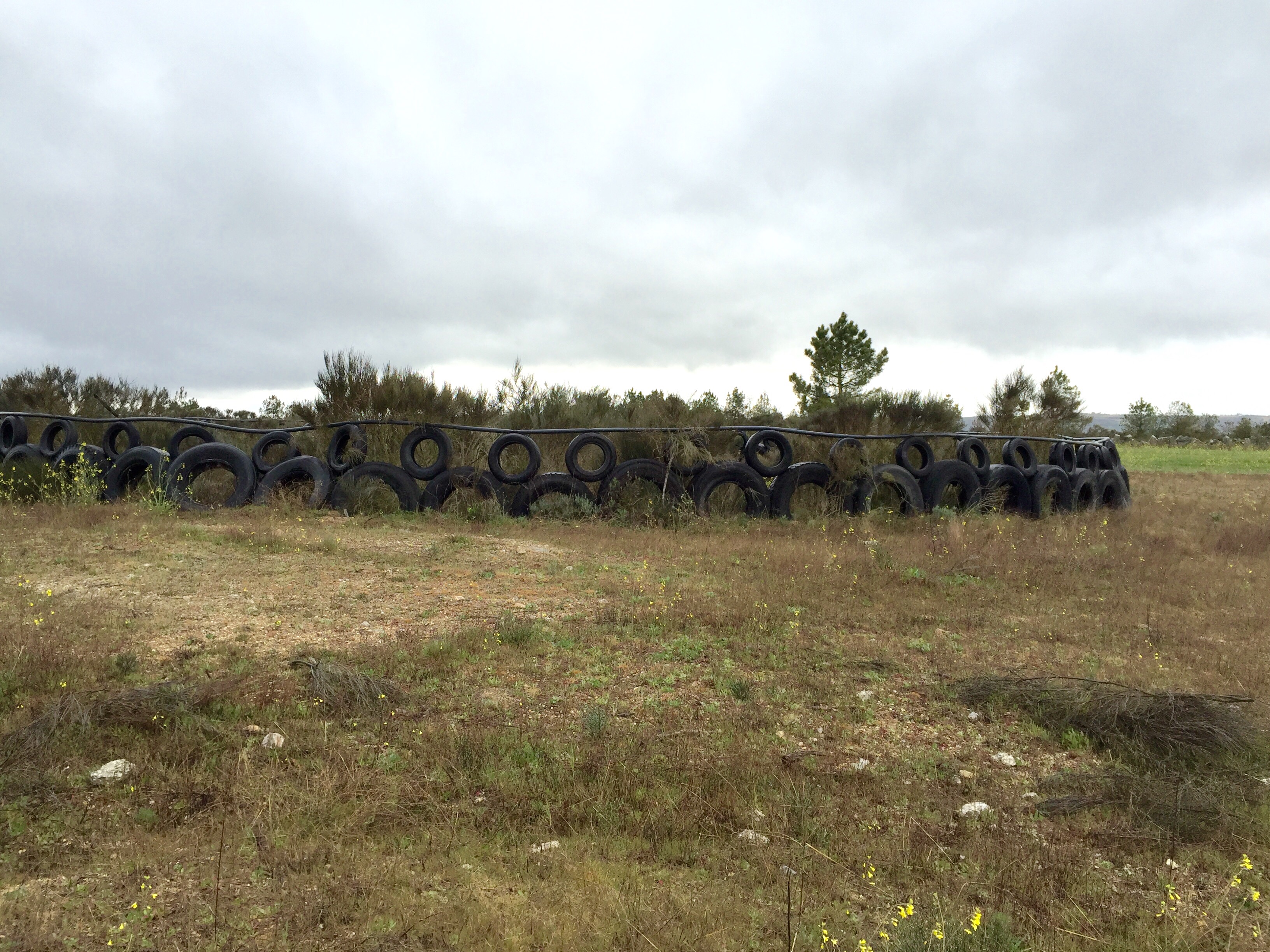 Nous avons vu deux fois la même chose à une centaine de mètres d’intervalle, un cercle fait avec des pneus au milieu du champ. ???