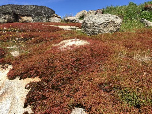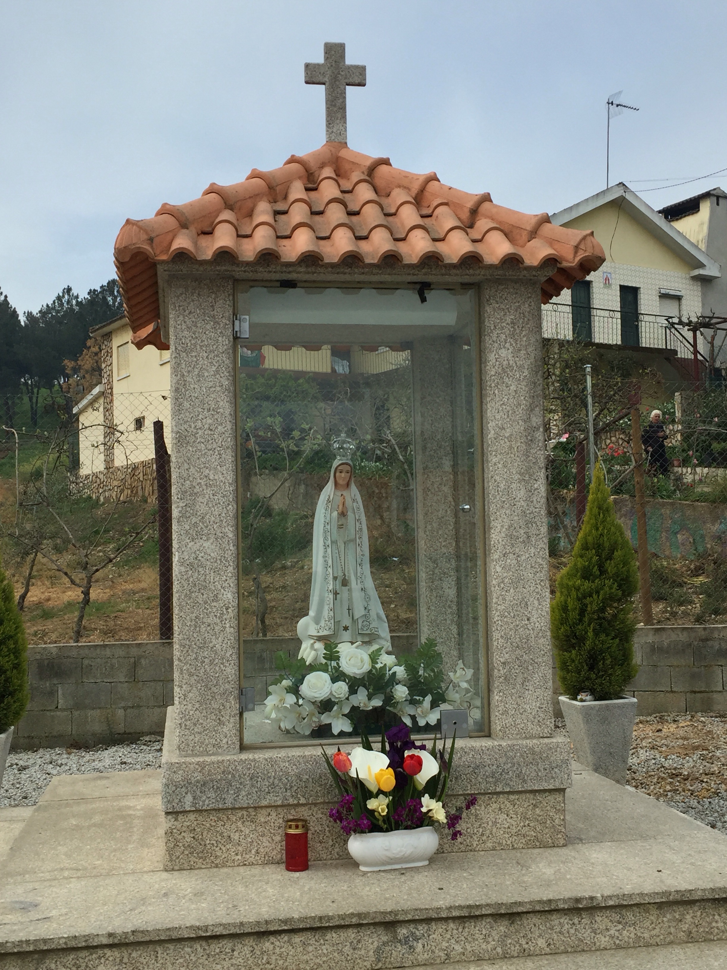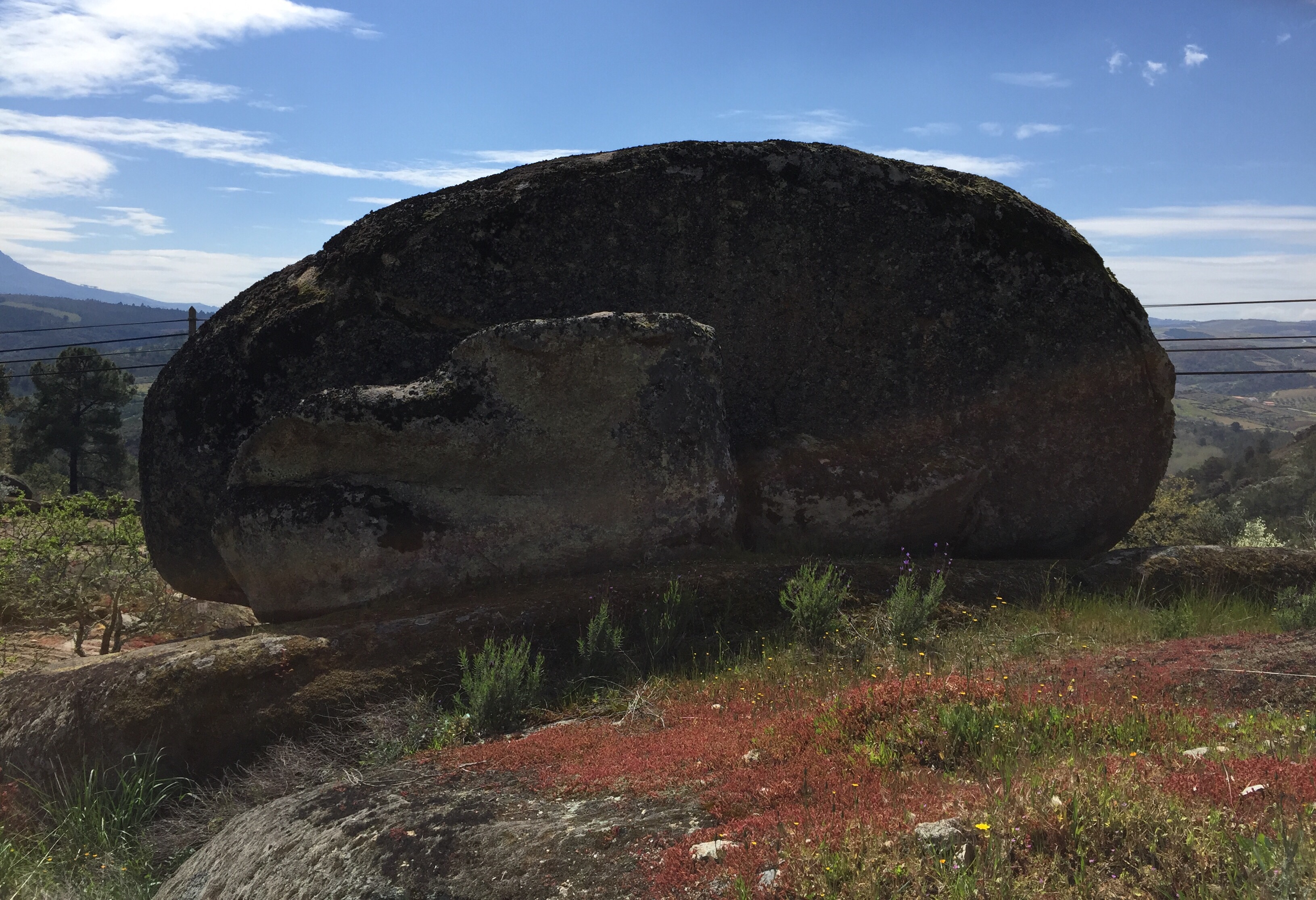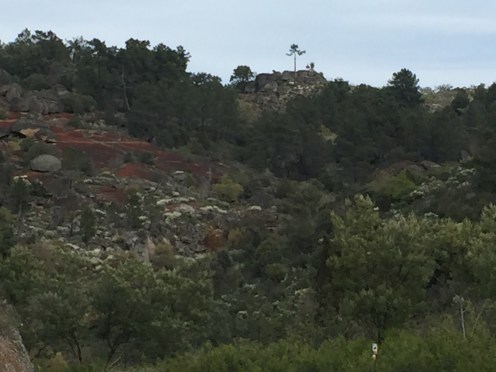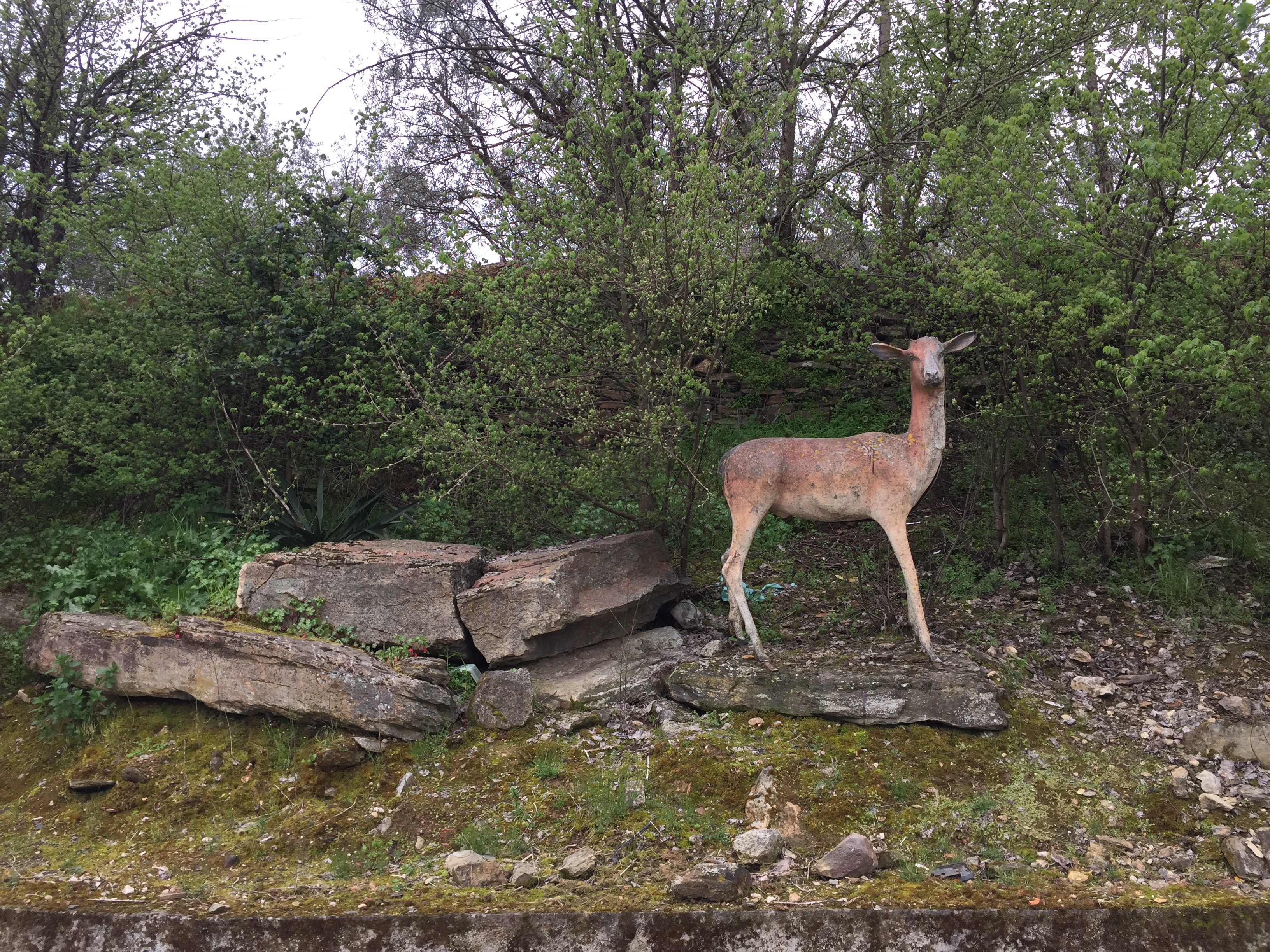 Ça fait bien longtemps que nous ne voyons plus d’animaux, je crois que c’est depuis que nous avons quitté l’Alentejo, alors pour nous faire plaisir ils nous ont mis une biche en ciment au bord de la route !!!