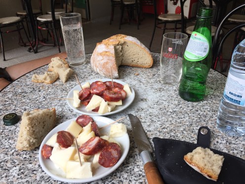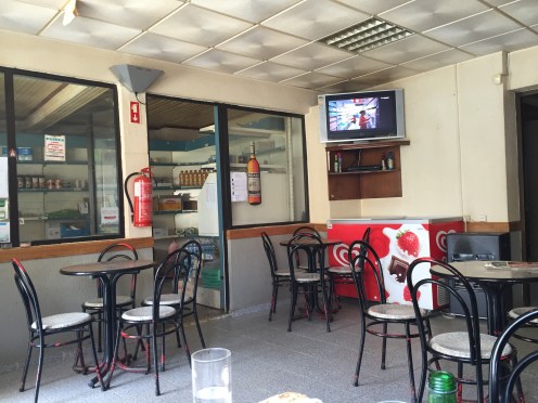 Dans le frigo, il y avait du fromage et du chorizo. Elle vendait du pain. Elle a eu la gentillesse de tout nous découper, nous a prêté un couteau pour couper le pain et nous a permis de manger dans le bar. Un vrai festin, il ne manquait que le petit verre de rouge !!!