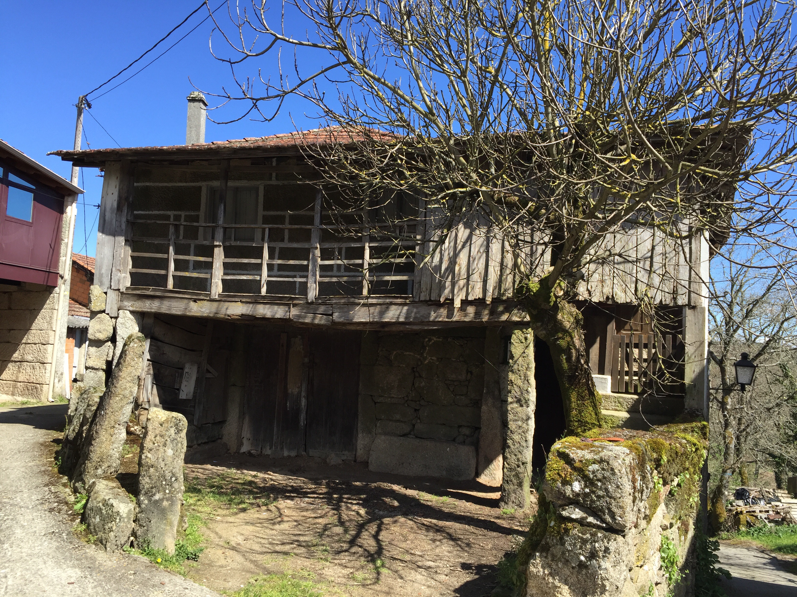 Et voici ma première albergue. Nous sommes arrivés à la fin de l’étape, le seul hébergement du coin, est cette albergue toute neuve (pour les non initiés, c’est le logement des pèlerins). Sinon il faut faire encore 13 km pour trouver à se loger. C’est fermé, il y a un numéro de téléphone sur la porte, j’appelle, dix minutes plus tard la responsable arrive. Et là tout s’arrête, je pensais qu’on allait nous louer des draps et des serviettes de toilettes. Non, il n’y a rien que des matelas tous nus, même pas une couverture. Et nous, nous n’avons rien, nous voyageons légers. La dame me dit qu’elle va nous mettre le chauffage et que nous n’aurons pas froid !!! J’imagine l’état dans lequel je serai demain matin après avoir dormi toute habillée !!! Je suis bien ennuyée de l’avoir fait venir pour rien, mais nous repartons. À côté il y a un restaurant. Nous demandons qu’on nous appelle un taxi pour aller à la ville voisine car la dame de l’albergue n’avait aucun numéro. Pas la peine dans demi-heure il y a un bus. Et nous voilà à Xinzo de Limia en train de dormir à l’hôtel !!! Moi qui comptais connaître les joies de l’albergue !!! Je dois dire que nous n’aurions pas été gênés par la présence des autres car nous sommes les seuls pèlerins. Peut-être que lorsque nous arriverons à Ourense et que nous retrouverons la Via de la Plata, peut-être verrons-nous des pèlerins ???