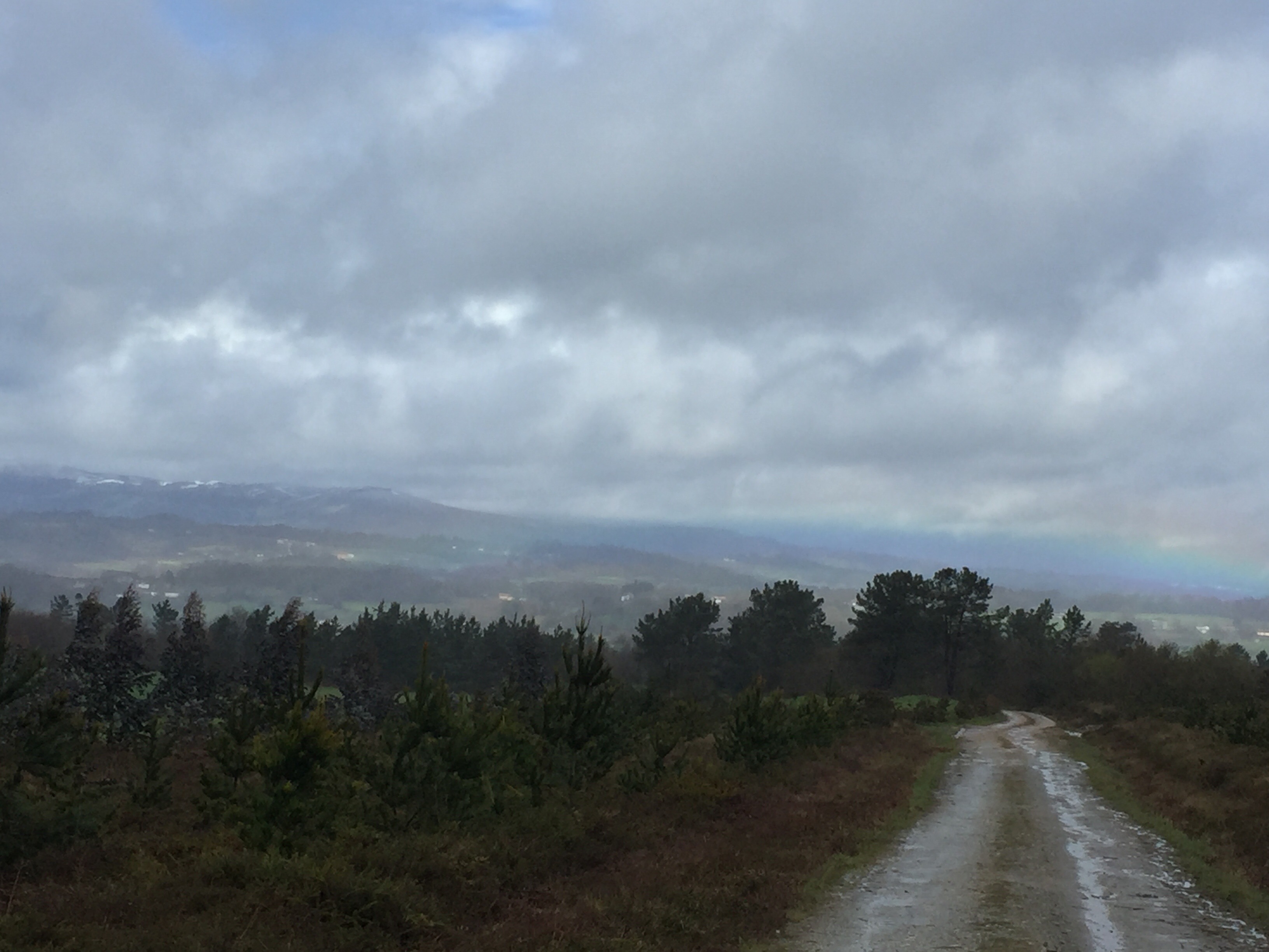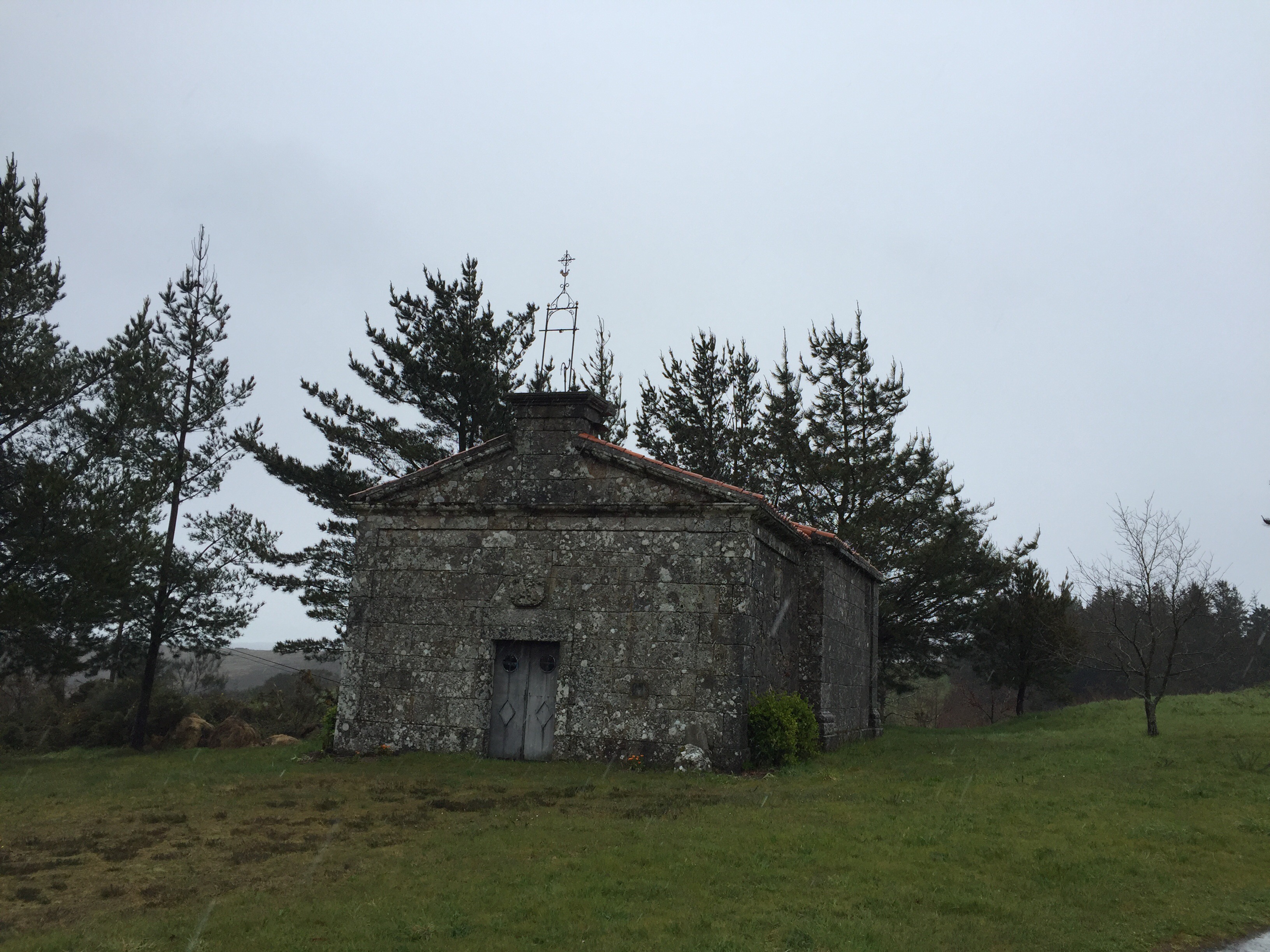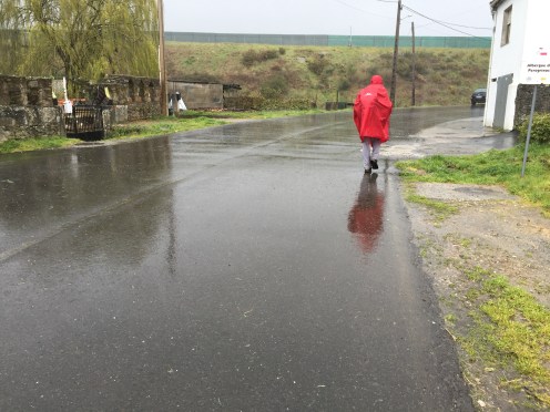 Ce matin comme prévu, notre logeuse vient nous chercher pour nous emmener à Castro Dozón. Les essuie-glaces fonctionnement à plein régime !!! Elle nous dépose devant le bar où nous avons attendu le bus hier. Nous nous y réfugions en attendant que la pluie s’arrête.