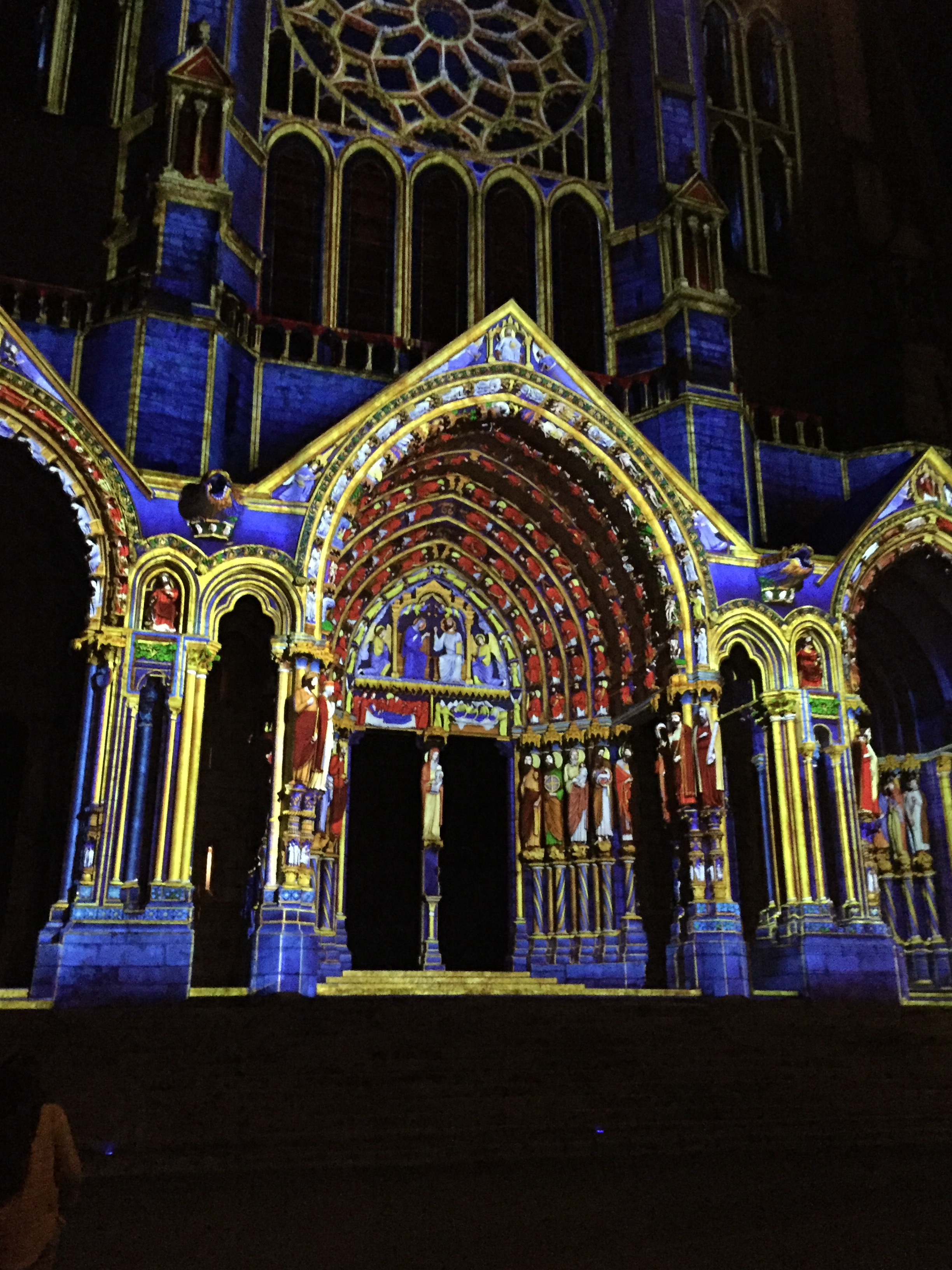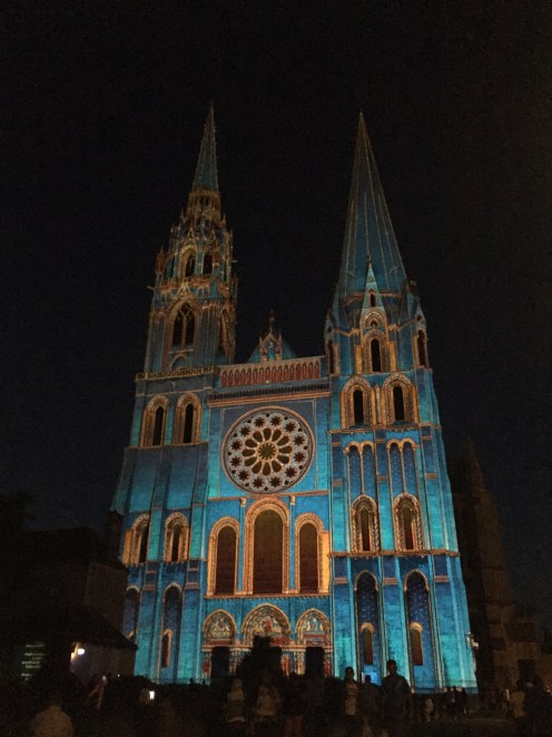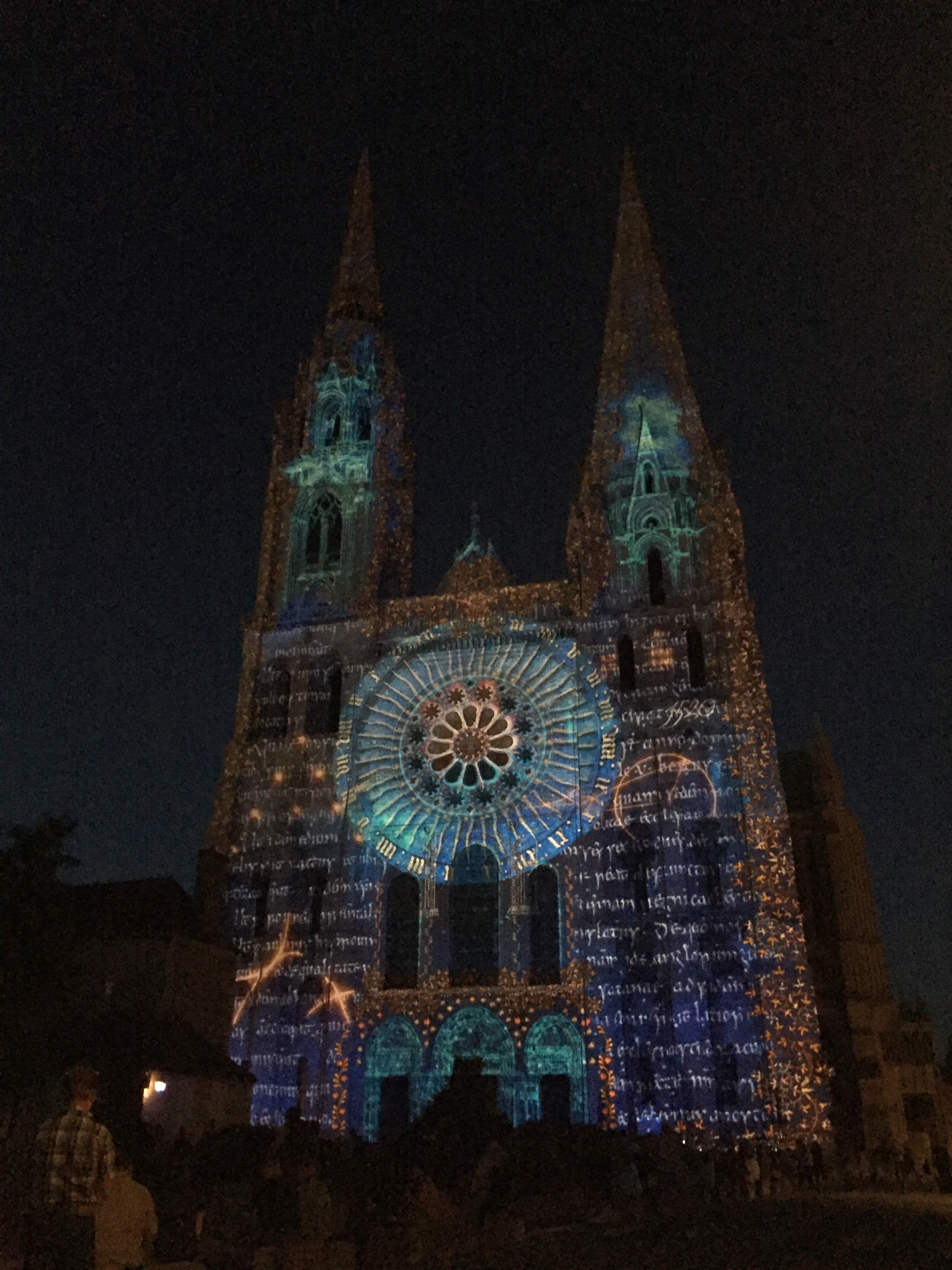 Nous avons passé une belle soirée dans les rues de Chartres. Il y a 24 lieux illuminés. Nous n’en avons vu que 7 !!! Chartres en lumières à lieu tous les soirs du 16 avril au 8 octobre. Légèrement plus longtemps que les illuminations de Nîmes à Noël !!!