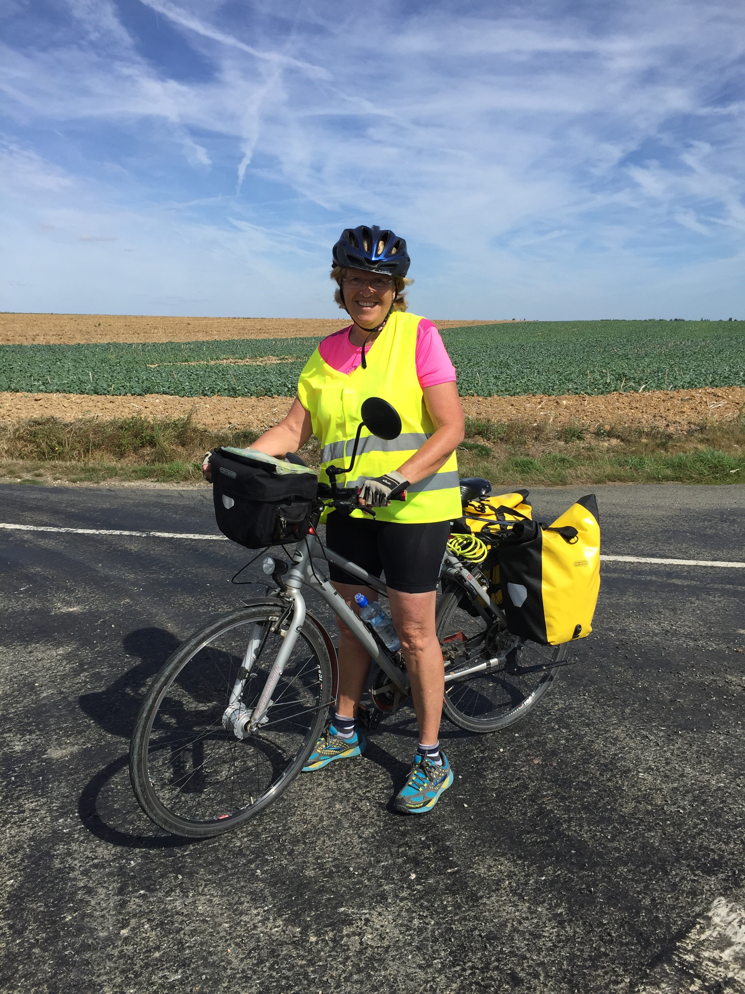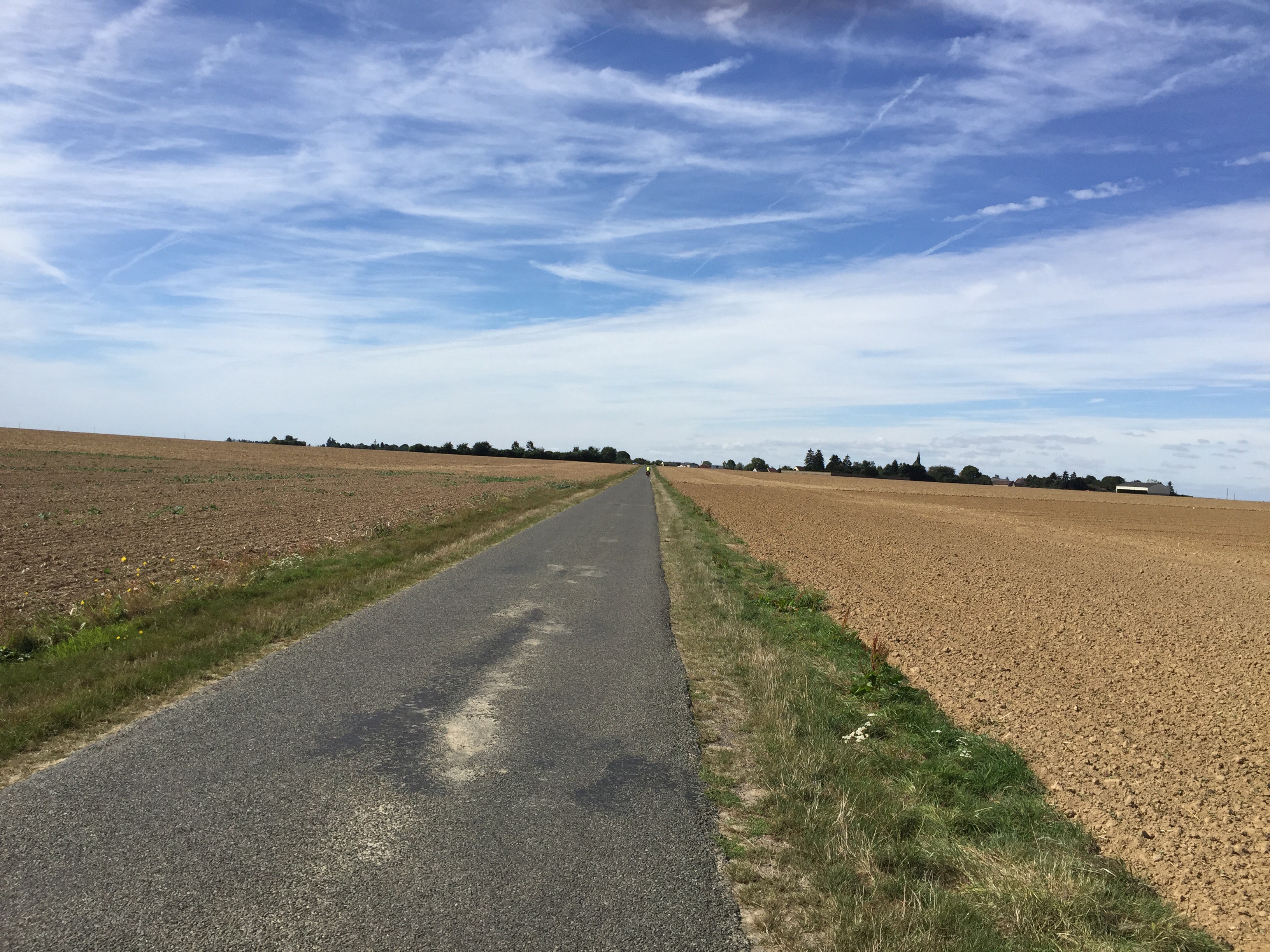 J’ai parlé des côtes, de la chaleur, j’ai oublié le vent !!! Non, il n’est pas très fort, ce n’est pas notre Mistral mais il souffle tous les jours vers midi et nous l’avons de face. Dur, dur pour moi !!!