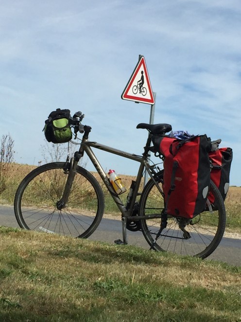 Nous roulons souvent sur des routes que nous partageons avec les voitures, le pictogramme du vélo est présent de temps en temps sur le sol.