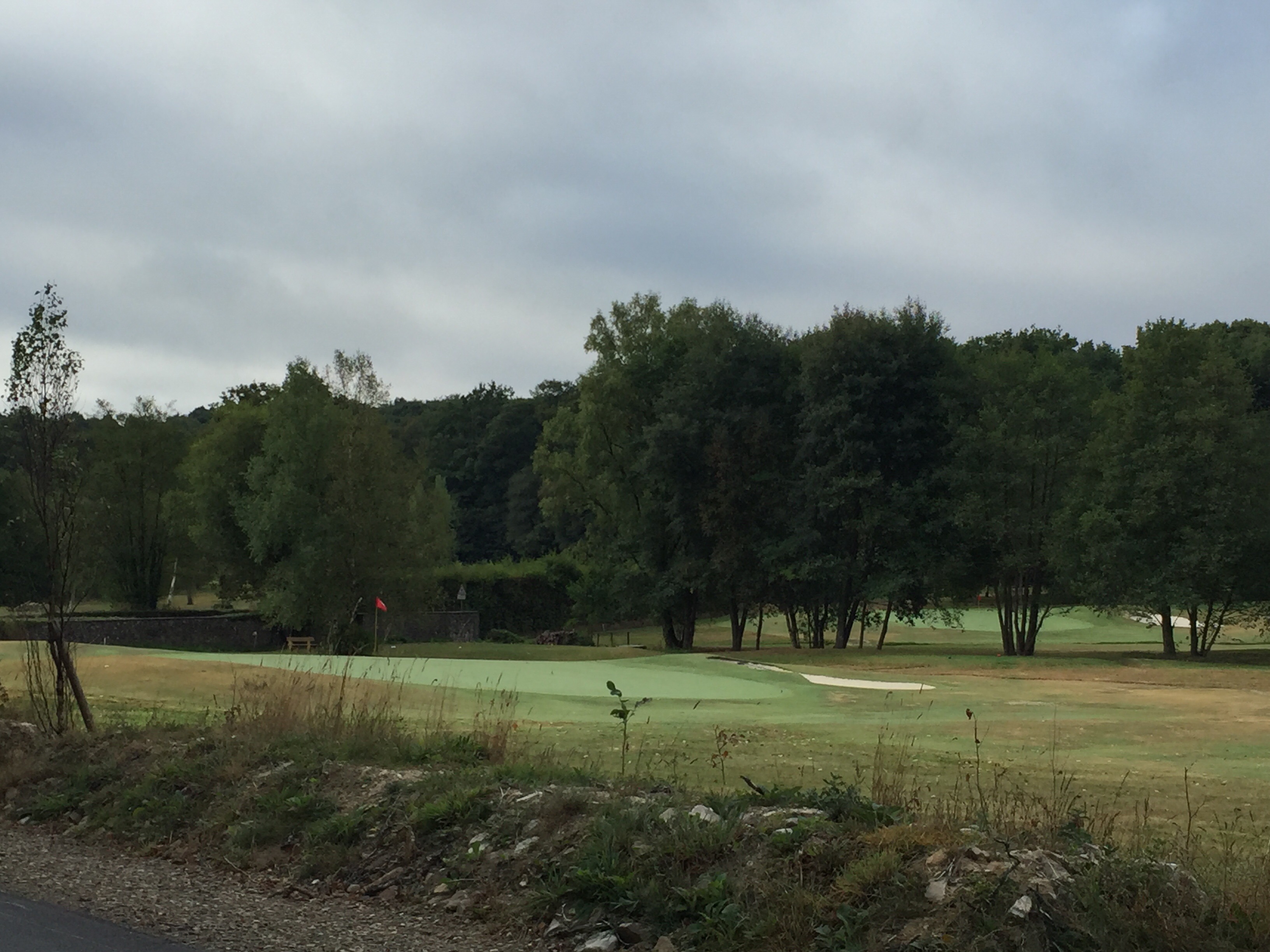 Le golf d’un côté, une belle demeure de l’autre. Parcours très agréable. Ça monte et ça descend mais c’est acceptable pour moi.